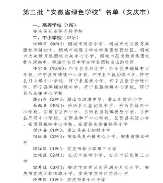 12月9日,安徽省教育廳發布《關于第三批“安徽省綠色學校”入選名單的公示》,我校榮獲第三批“安徽省綠色學校”稱號。