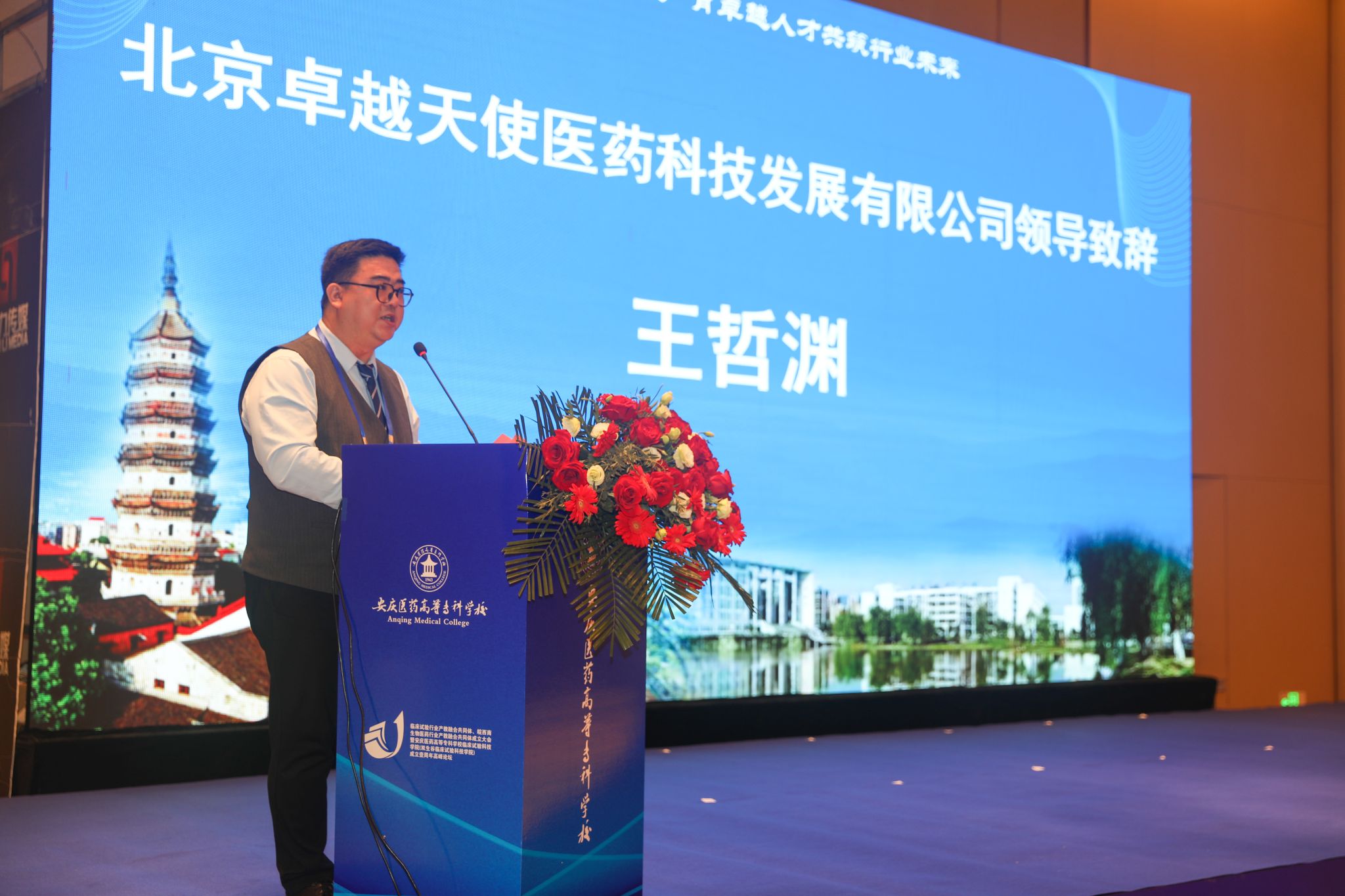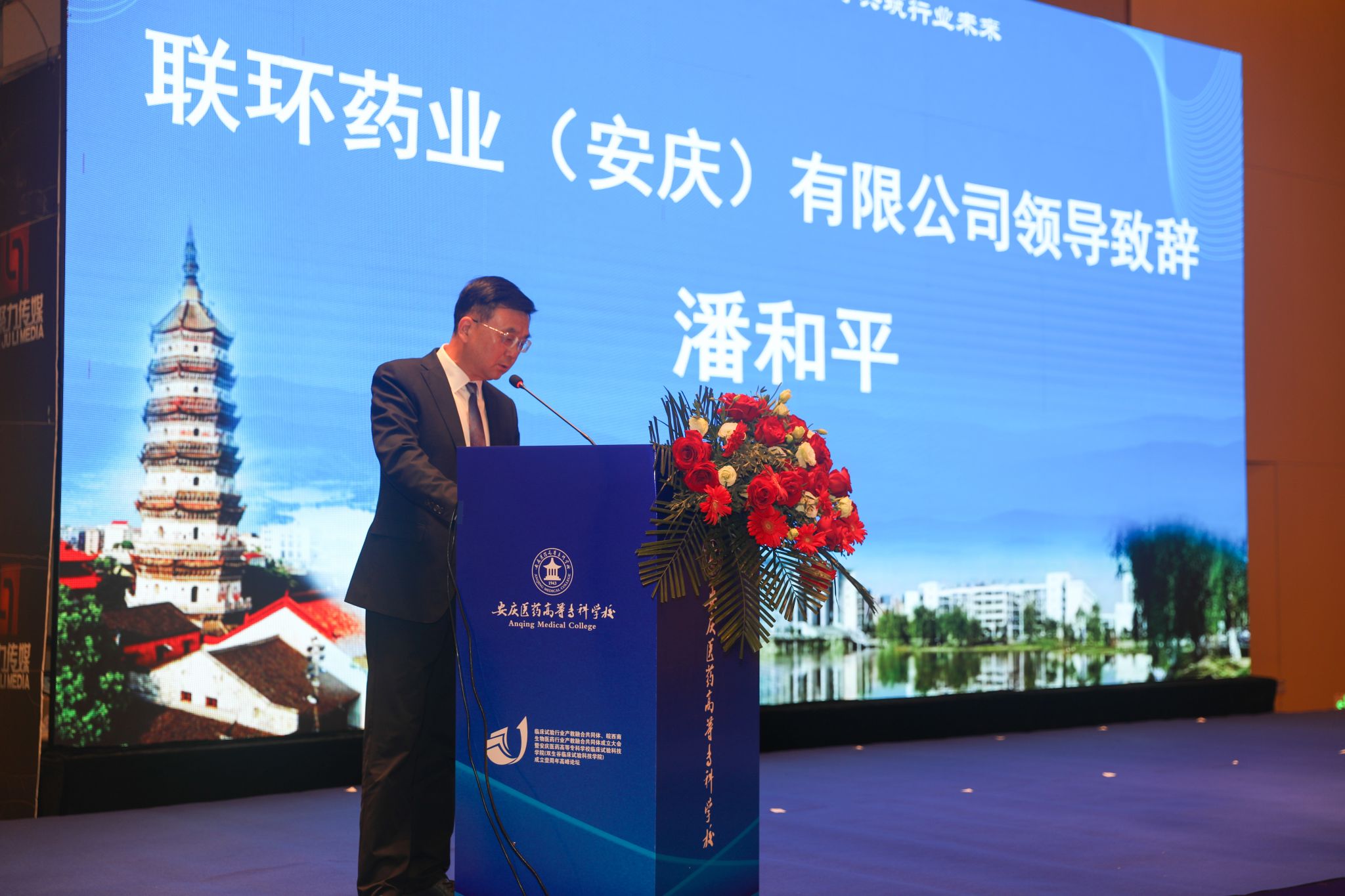 省教育廳高教處副處長蘇石,安慶市人大常委會黨組成員、副主任葉林霞,蚌埠醫(yī)科大學(xué)黨委常委、副校長陳昌杰,安慶師范大學(xué)黨委常委、副校長吳瓊,安慶市科學(xué)技術(shù)局黨組書記、局長謝文婕、市經(jīng)濟和信息化局黨工委書記、局長吳愛德、市民政局局長蔡婷婷、市衛(wèi)生健康委員會黨組書記、主任張賢惜、市市場監(jiān)督管理局黨組書記、局長焦玲,聯(lián)環(huán)藥業(yè)(安慶)有限公司總經(jīng)理潘和平、北京卓越天使醫(yī)藥科技發(fā)展有限公司總經(jīng)理王哲淵、北京賽德盛醫(yī)藥科技股份有限公司董事長汪金海、華中科技大學(xué)同濟醫(yī)學(xué)院附屬協(xié)和醫(yī)院學(xué)科建設(shè)處處長、藥物臨床試驗機構(gòu)辦主任吳建才、浙江大學(xué)申屠建中教授出席會議,市教體局、市人社局、高新技術(shù)產(chǎn)業(yè)開發(fā)區(qū)管理委員會,市雙生谷發(fā)展運營中心等市直相關(guān)單位領(lǐng)導(dǎo),相關(guān)高校領(lǐng)導(dǎo)、專家,相關(guān)行業(yè)組織、醫(yī)院、企業(yè)負責人,學(xué)校領(lǐng)導(dǎo)及師生代表200余人參加會議。會議由校黨委副書記、校長朱慶豐主持。