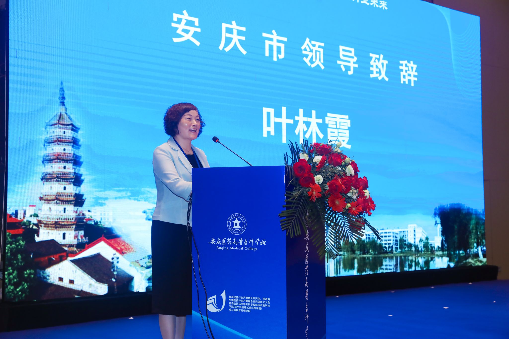 葉林霞在開幕式致辭中向各位領(lǐng)導(dǎo)、專家、教授、有關(guān)高校、合作醫(yī)院、行業(yè)組織代表表示熱烈歡迎和衷心感謝,向兩個共同體的成立表示熱烈祝賀!葉林霞表示,產(chǎn)教融合共同體成立,是我市高等教育事業(yè)和醫(yī)工醫(yī)藥產(chǎn)業(yè)以及“雙生”產(chǎn)業(yè)發(fā)展的一件喜事,也是我國臨床試驗行業(yè)和皖西南生物醫(yī)藥行業(yè)的一件大事,兩個共同體的成立和臨床試驗科技學(xué)院的不斷成長,將會打造我市醫(yī)藥教育特色,進一步深化醫(yī)學(xué)職業(yè)教育改革,推動臨床試驗科學(xué)進步,賦能新興產(chǎn)業(yè)高質(zhì)量發(fā)展;有利于整合區(qū)域醫(yī)療行業(yè)、產(chǎn)業(yè)資源和教育、科技、人才資源,推動政、校、行、企深度合作,實現(xiàn)共贏,促進產(chǎn)教融合、科教融匯;進一步貫通產(chǎn)業(yè)鏈、教育鏈、人才鏈、創(chuàng)新鏈,打造高等教育服務(wù)行業(yè)、產(chǎn)業(yè)發(fā)展新特色、新優(yōu)勢。