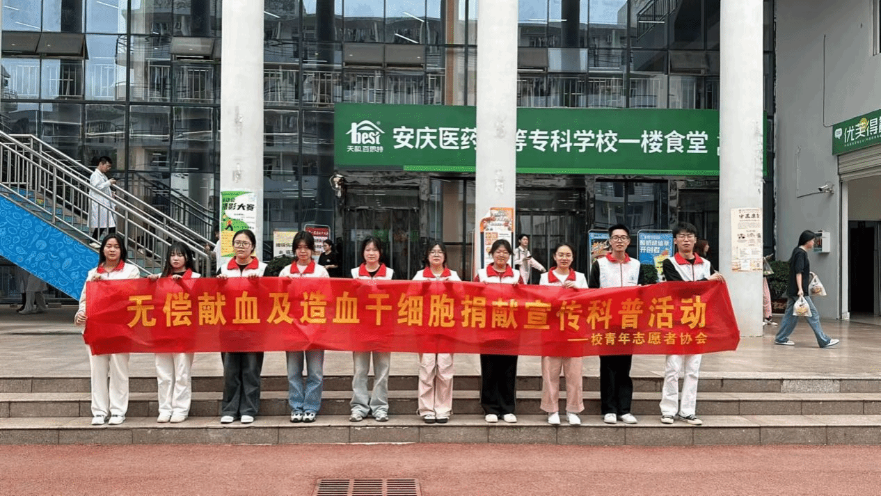 博愛周期間,學校聯合安慶市紅十字會、安慶市紅十字中心血站在食堂門口廣場開展無償獻血及造血干細胞捐獻宣傳科普活動,動員更多地學子參與到紅十字三獻志愿服務活動中。5月8日世界紅十字日當天,我校7名青年學生自愿成為造血干細胞捐獻者,并成功采樣入庫,用實際行動展現醫專學子的仁愛之心。