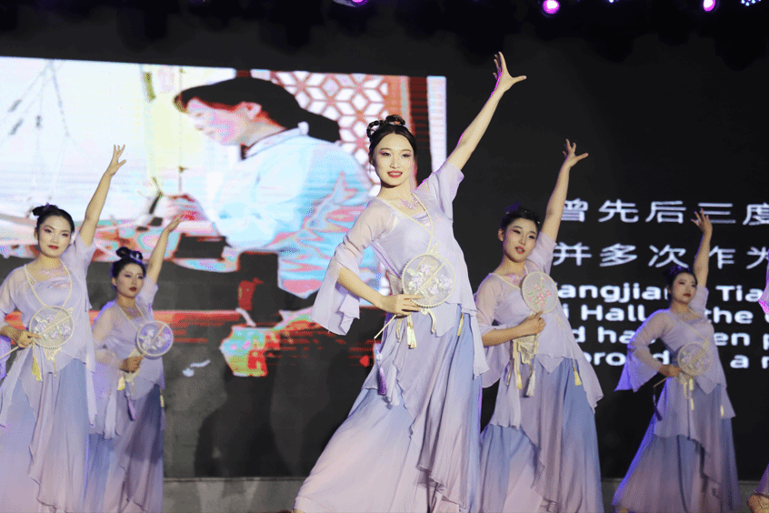 言心心理社活力四射的青春律動(dòng)操《悅動(dòng)青春》拉開晚會(huì)序幕。挑花社帶來的《西樓別序》將古典舞與非物質(zhì)文化遺產(chǎn)“望江挑花”相結(jié)合,充分展示中華優(yōu)秀傳統(tǒng)文化的魅力。情景朗誦《醫(yī)舞詩韻》由青廉社和天使啟航社聯(lián)袂出演,誓言錚錚,是學(xué)子們立志廉潔從醫(yī),共建廉潔校園,扣好“人生第一粒扣子”。歌曲《沒抓緊的愛》中流行歌曲與傳統(tǒng)戲曲的碰撞,讓人耳目一新。藝術(shù)團(tuán)節(jié)目《西湖子·初妝》的舞蹈演員們用靈動(dòng)的舞姿,描繪了一幅江南水韻幽靜與美麗的畫卷。敬老學(xué)社精心編排的原創(chuàng)情景劇《愛助夕陽》,用幽默風(fēng)趣的劇情,展現(xiàn)人口老齡化背景下陪診師等新興職業(yè)對(duì)于老年人健康的價(jià)值與意義,同時(shí)呼喚社會(huì)對(duì)失能老人的關(guān)注。《入夢蘭亭》中,漢韻匠藝文化社的社員們身著精美的傳統(tǒng)服飾翩翩起舞,讓人恍若穿越時(shí)空。M-Soul街舞滑板社帶來的街舞《Drama》充滿青年人的活力與熱情,火熱的舞蹈瞬間將現(xiàn)場的氣氛點(diǎn)燃。藝術(shù)團(tuán)的詩朗誦《我的南方和北方》,吟誦祖國的大好河山,氣勢磅礴,令人動(dòng)容。
