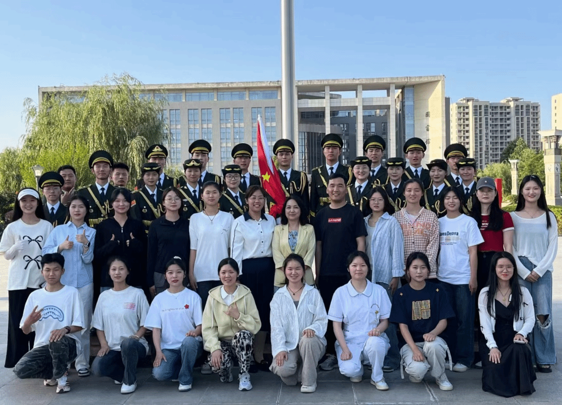 隊員代蒙恩同學還代表國防先鋒學社和其他高校進行了國旗文化交流,就隊伍建設、日常訓練等方面進行討論學習,為推進我校國防先鋒學社的發展建設積累了寶貴經驗。隊員們交換臂章、互致祝福,進行集體合影留念,加深了我校與兄弟院校之間友誼。