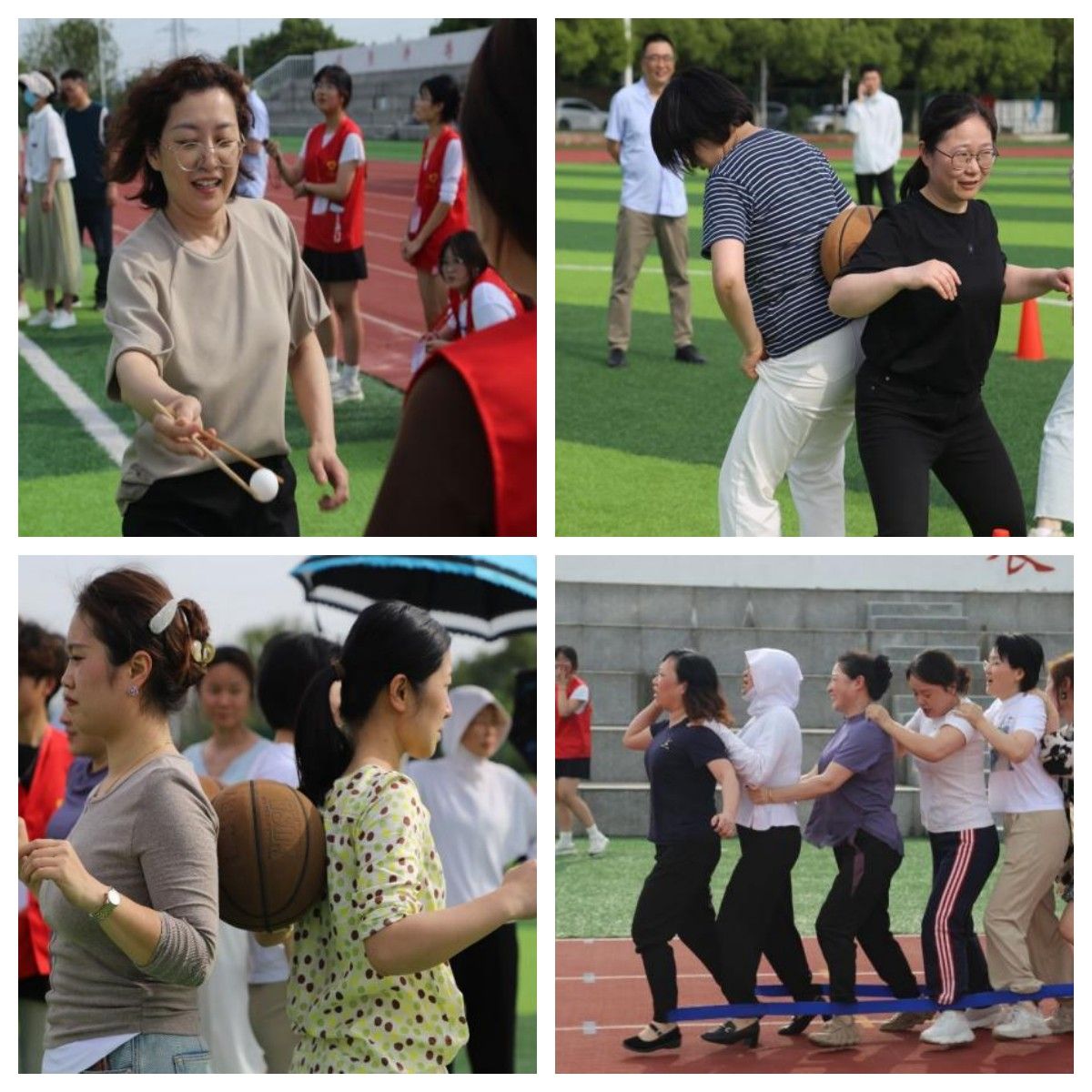 本次趣味運動會設有“巧手夾珠”“夾球接力”和“齊心協力”等團體項目。這些項目既需要隊員的協調和配合,又需要體力和耐力,考驗了運動員的協調能力,發揚了頑強拼搏,樂觀向上的體育精神。