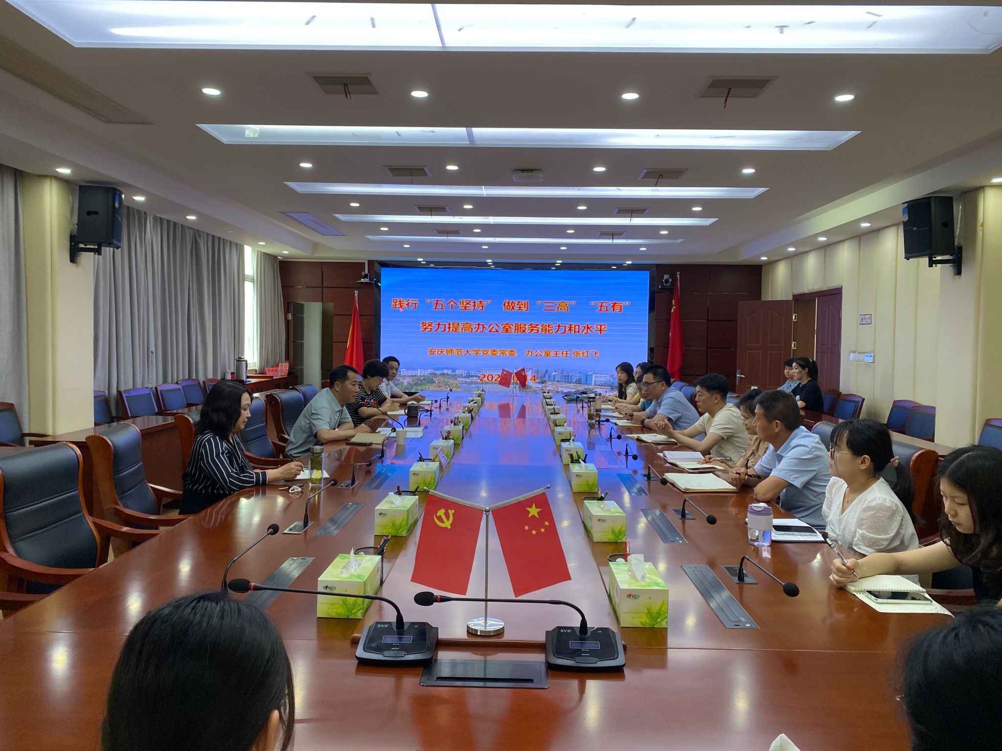 為增強校院辦公室工作人員能力素質,提高服務能力,6月14日下午,我校邀請安慶師范大學黨委常委、辦公室主任張紅飛來校,召開辦公室服務能力提升交流會。校黨委委員朱雯、陳琪、劉毅,黨政辦、宣傳部全體人員及各二級學院辦公室工作人員參加會議。會議由校黨委委員、黨政辦主任陳琪主持。
