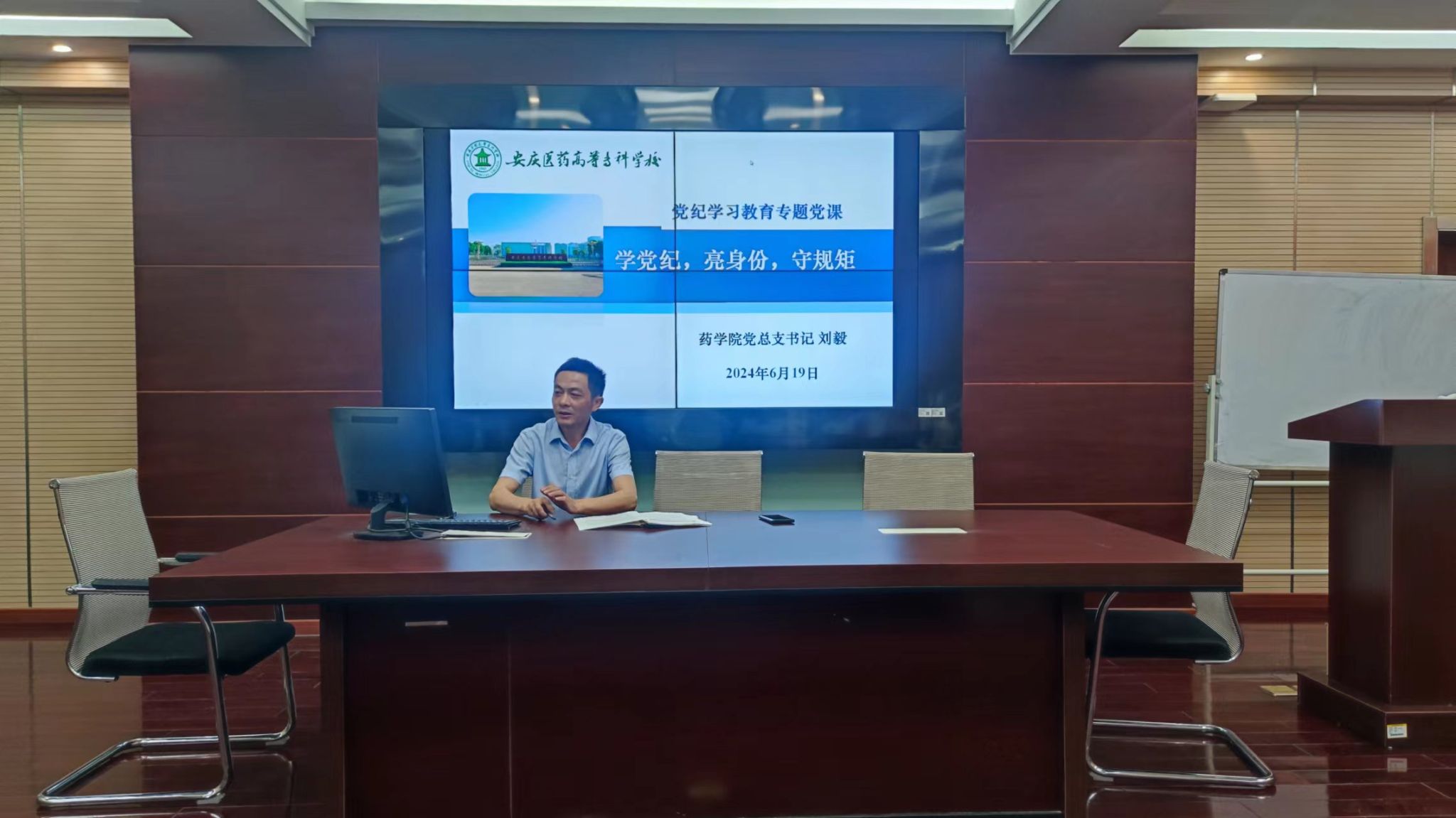 為推進黨紀學習教育走深走實,6月19日,藥學院黨總支組織開展“學黨紀·亮身份·守規矩”專題黨課,本次黨課由校黨委委員、藥學院黨總支書記、院長劉毅主講,校黨委副書記、校長朱慶豐以普通黨員身份參加學習。