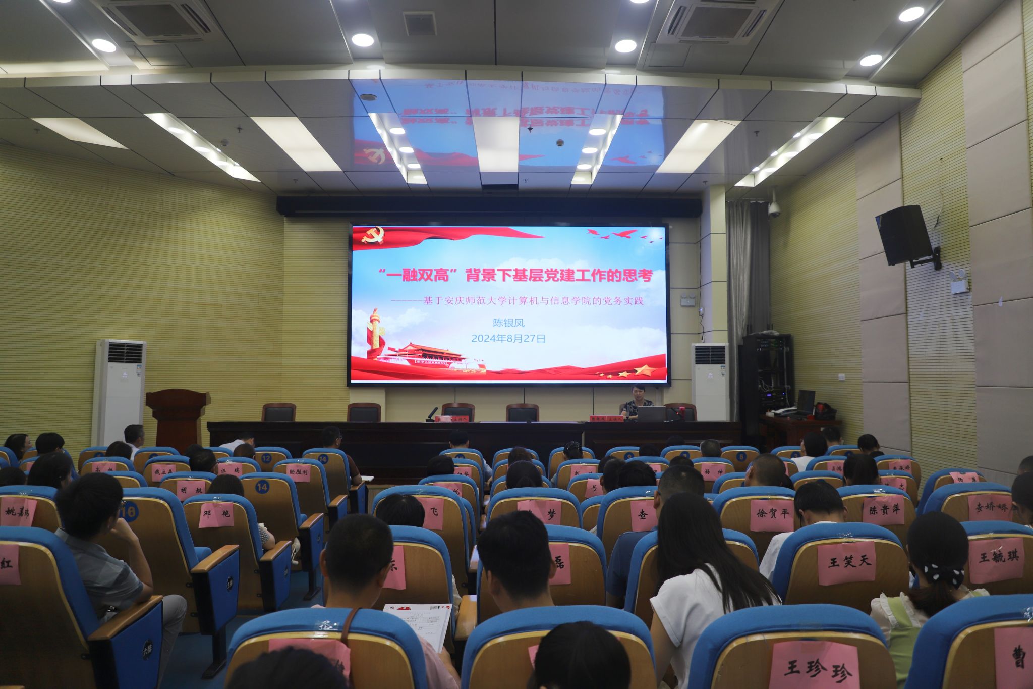 安慶師范大學計算機學院黨委書記陳銀鳳結合計算機與信息學院黨建實際,講述一融雙高的內涵與現實要求、基層黨建工作的實踐路徑,分享高校基層黨建工作經驗。