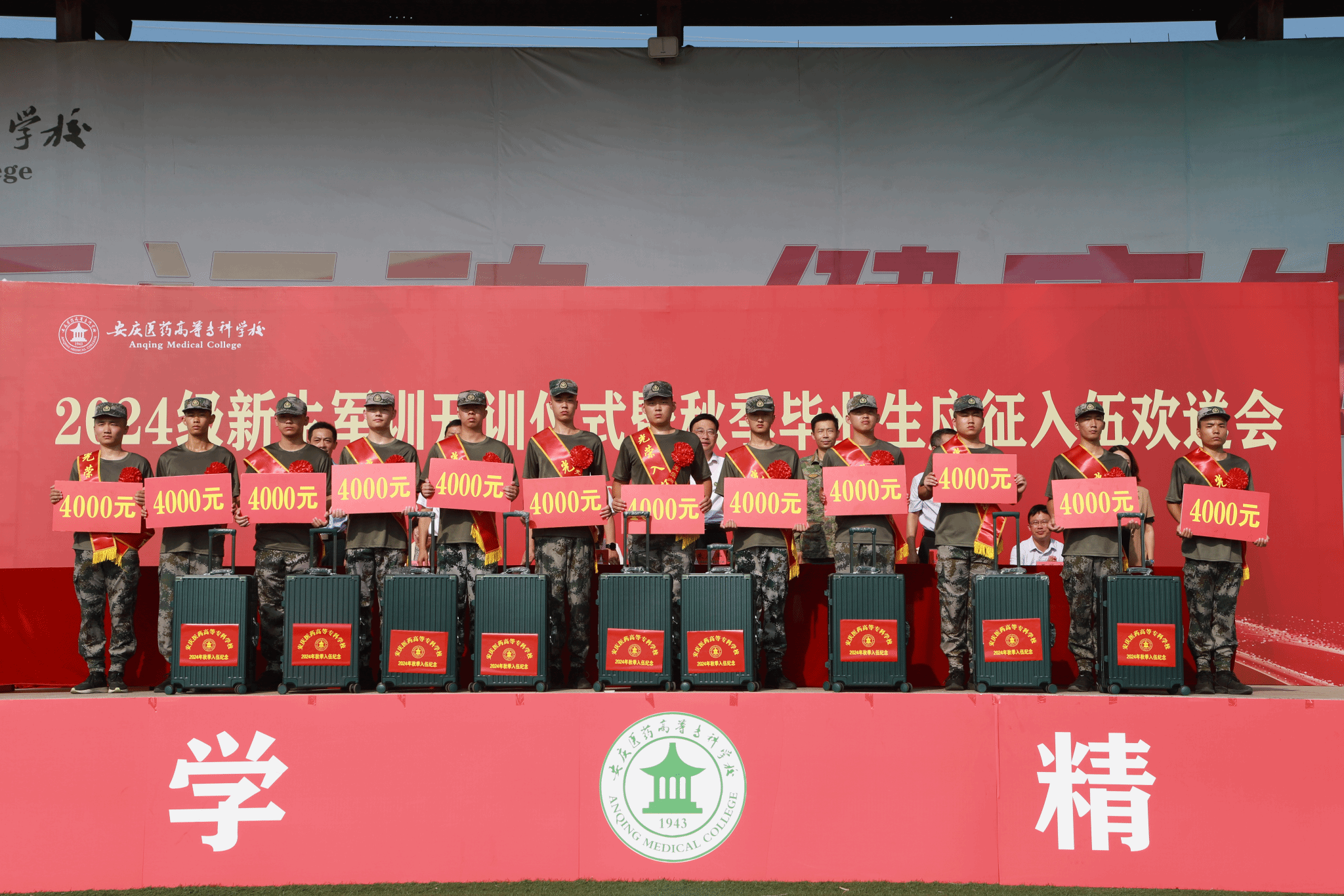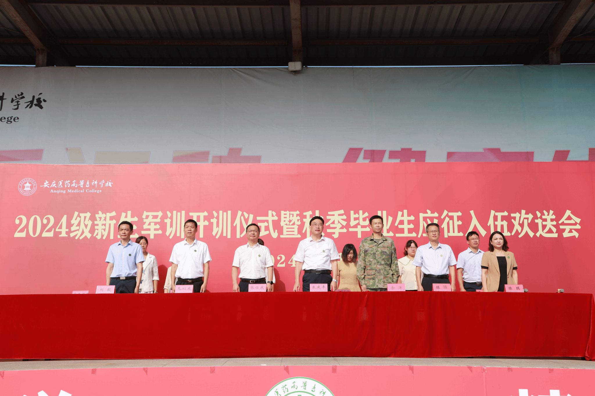 9月10日上午,我校舉行2024級新生軍訓開訓儀式暨秋季畢業生應征入伍歡送會。宜秀區人民武裝部部長余洋受邀參加活動,校領導朱慶豐、張仕慶、陳燚、毛以成、陳琪、劉毅,團學部門負責同志、學管工作人員、軍訓教官、我校秋季入伍新兵、2024級新生輔導員和新生參加。開訓儀式由校黨委委員、黨政辦主任陳琪主持。