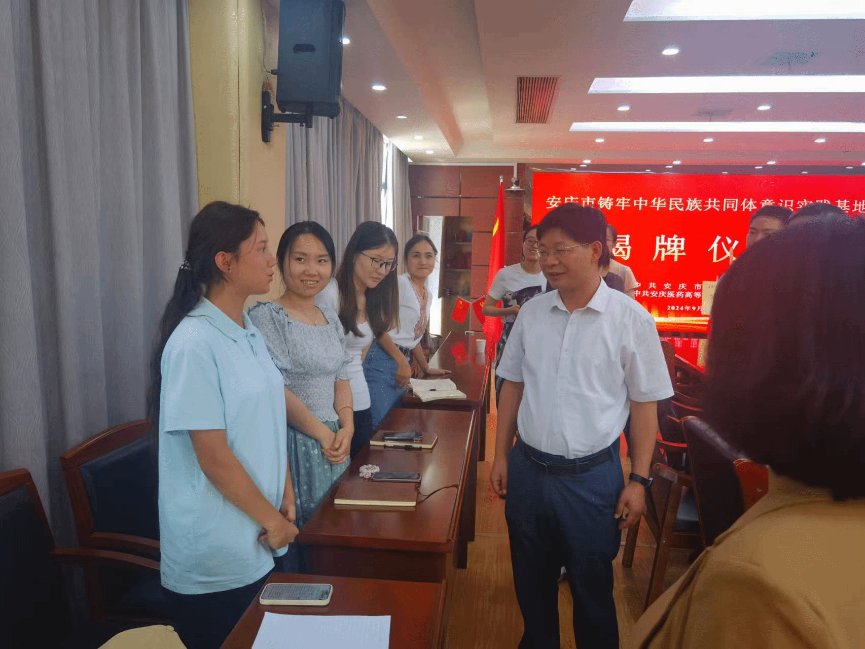 徐雄表示,成立鑄牢中華民族共同體意識(shí)實(shí)踐基地,不僅是貫徹落實(shí)黨中央和習(xí)近平總書(shū)記重要指示要求的具體行動(dòng),也是推動(dòng)全市民族團(tuán)結(jié)進(jìn)步創(chuàng)建工作提質(zhì)增效的重要抓手,更是有形有感有效鑄牢中華民族共同體意識(shí)的實(shí)踐探索。希望安慶醫(yī)專(zhuān)以此次鑄牢中華民族共同體意識(shí)實(shí)踐基地成立為契機(jī),自覺(jué)把思想和行動(dòng)統(tǒng)一到鑄牢中華民族共同體意識(shí)工作實(shí)踐上來(lái),積極開(kāi)展中華民族共同體意識(shí)研究宣傳,廣泛組織教育實(shí)踐活動(dòng),探索建立長(zhǎng)效機(jī)制,努力把實(shí)踐基地打造成為鑄牢中華民族共同體意識(shí)的示范陣地、推動(dòng)構(gòu)建共有精神家園的模范平臺(tái)、促進(jìn)各民族交往交流交融的重要窗口,積極為全市民族工作做出新的更大貢獻(xiàn)。