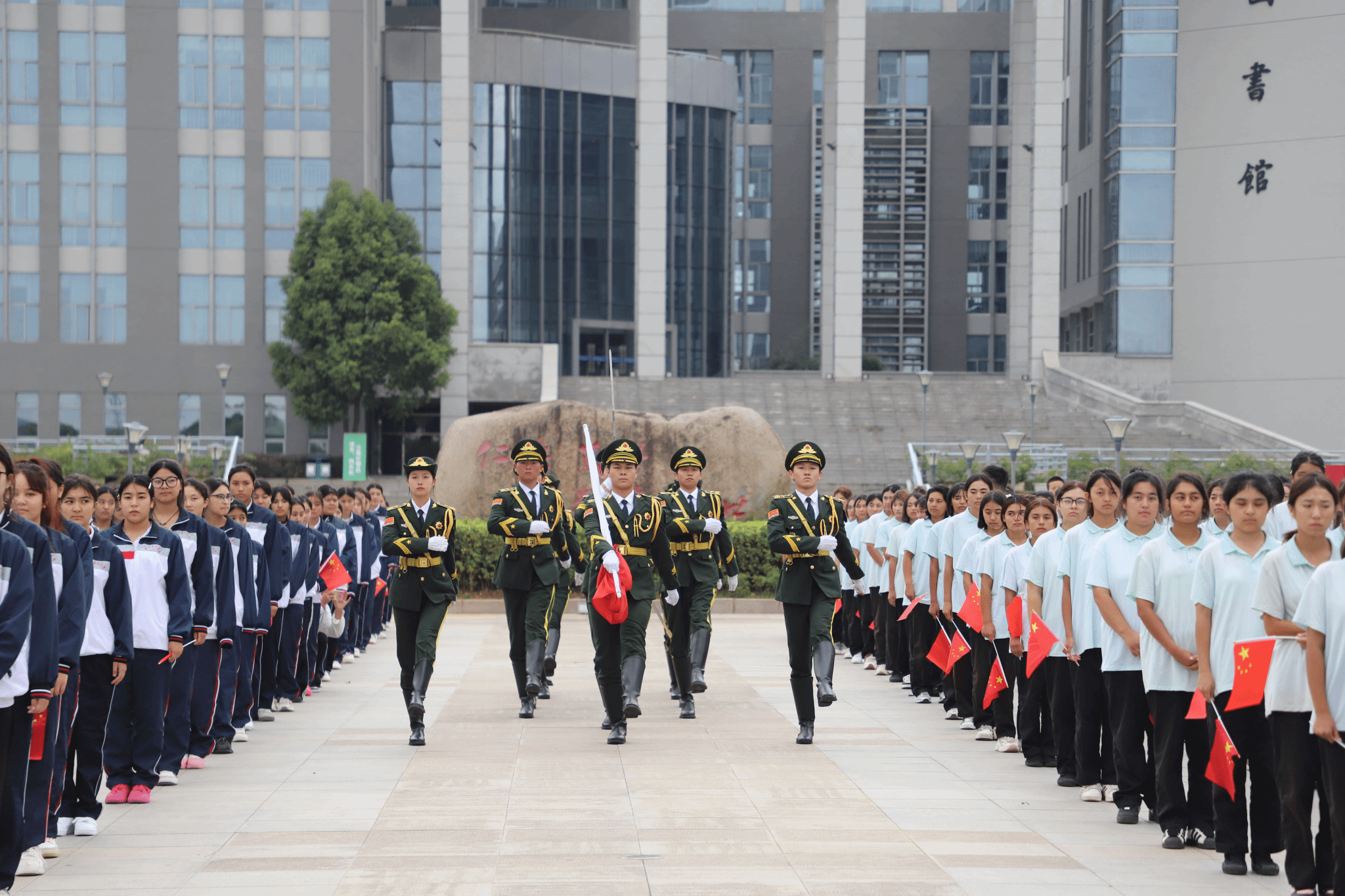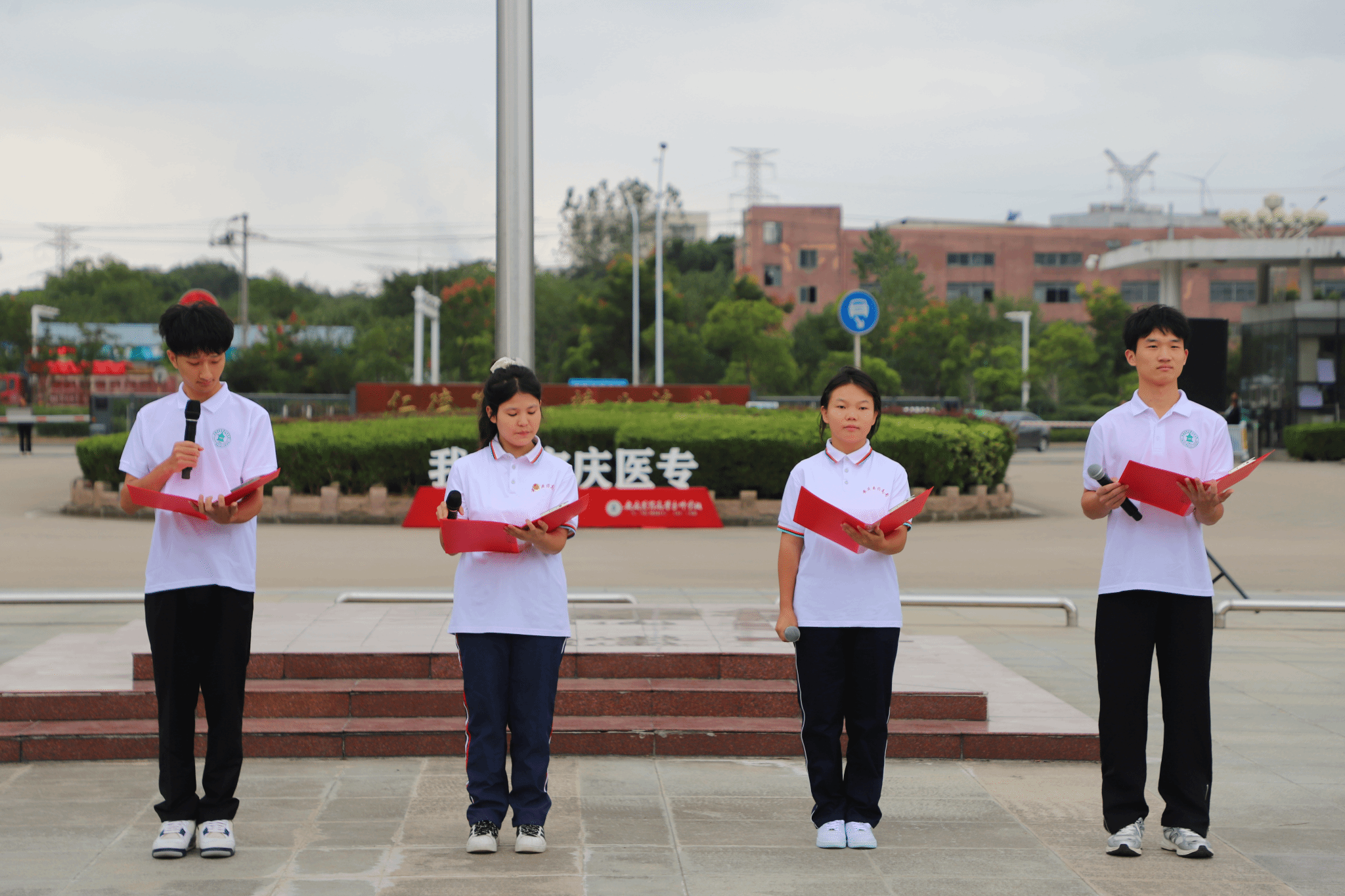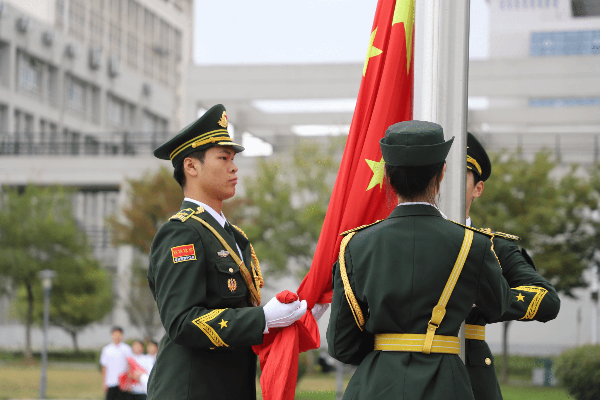 上午8時,在雄壯的《義勇軍進行曲》中,校國旗護衛隊擎旗手高高揚起國旗,鮮艷的五星紅旗迎風飄揚。全體師生向國旗行注目禮,高聲齊唱國歌,為偉大祖國送上最誠摯的祝福……愛國主義,成為每位醫專師生心中的主旋律,成為醫專追求卓越的不竭動力。