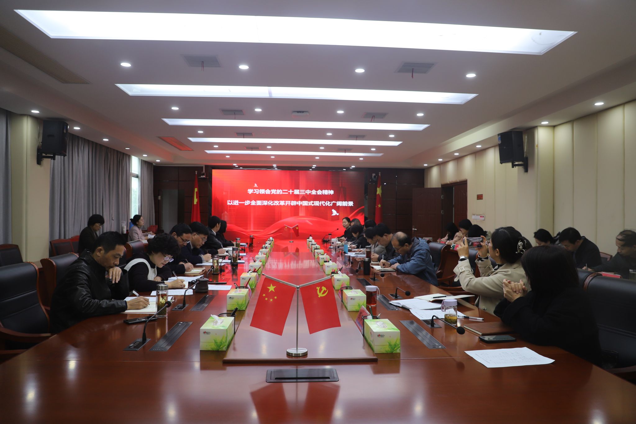 11月18日上午,校黨委理論學習中心組召開專題學習會,在前期學習基礎上,進一步深入學習黨的二十屆三中全會精神,圍繞“深入學習領會黨的二十屆三中全會精神,進一步全面深化學校改革”主題,開展集體學習研討,研究我校貫徹落實措施。校黨委副書記、校長朱慶豐主持研討并講話。市委列席旁聽工作組第三小組組長、市委講師團團長陳大士列席旁聽。校黨政領導班子,附院、各學院、處室(中心)負責人等參加會議。