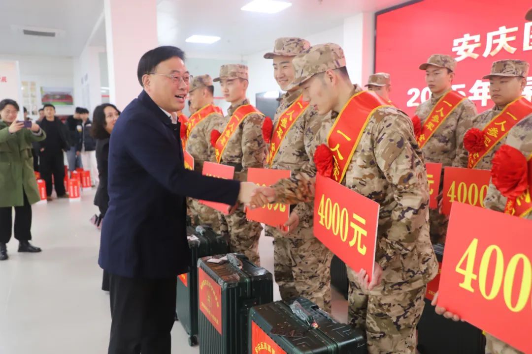 關家濤在致辭中指出,希望新兵們立志軍營報效祖國,為國防和軍隊現代化建設作出應有的貢獻;加強學習努力成才,成為未來我國國防和軍隊建設的中堅力量;為安慶人民爭光,展現安慶人求真務實、積極向上的精神風采。市委、市政府將進一步做好新兵入伍的后續工作,為新兵安心服役創造良好條件。