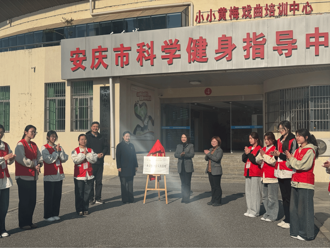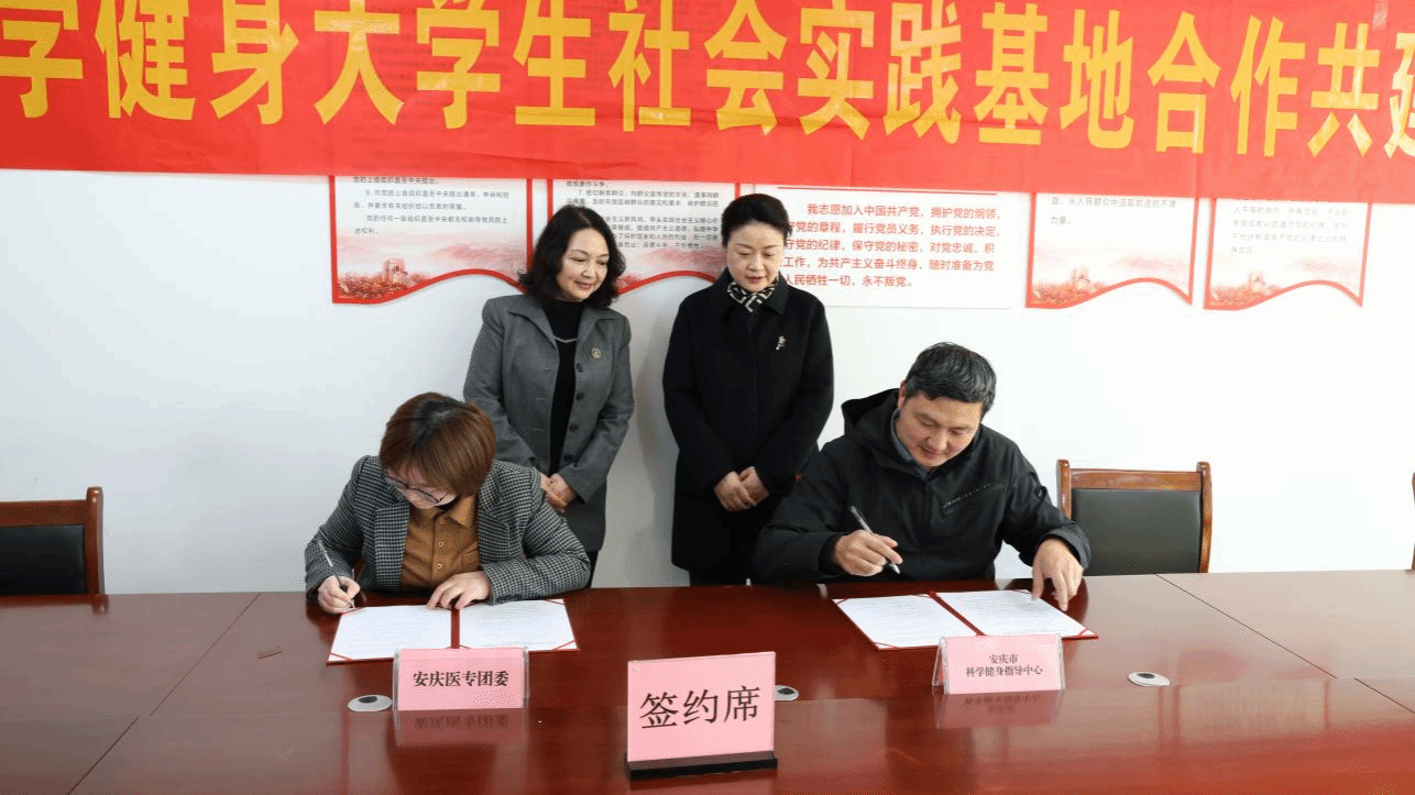儀式上,雙方共同為“大學(xué)生社會實踐基地”揭牌并簽訂合作協(xié)議。雙方一致表示,未來將以基地為平臺,共同培養(yǎng)一批專業(yè)的科學(xué)健身指導(dǎo)志愿者隊伍,常態(tài)化開展相關(guān)志愿服務(wù)活動,惠及安慶市民群眾,助力構(gòu)建更高水平的全民健身公共服務(wù)體系,為建設(shè)健康安慶、幸福城市增添新活力。活動開始前,參會人員還共同參觀安慶市科學(xué)健身指導(dǎo)中心,重點了解中心的設(shè)施功能以及服務(wù)項目。