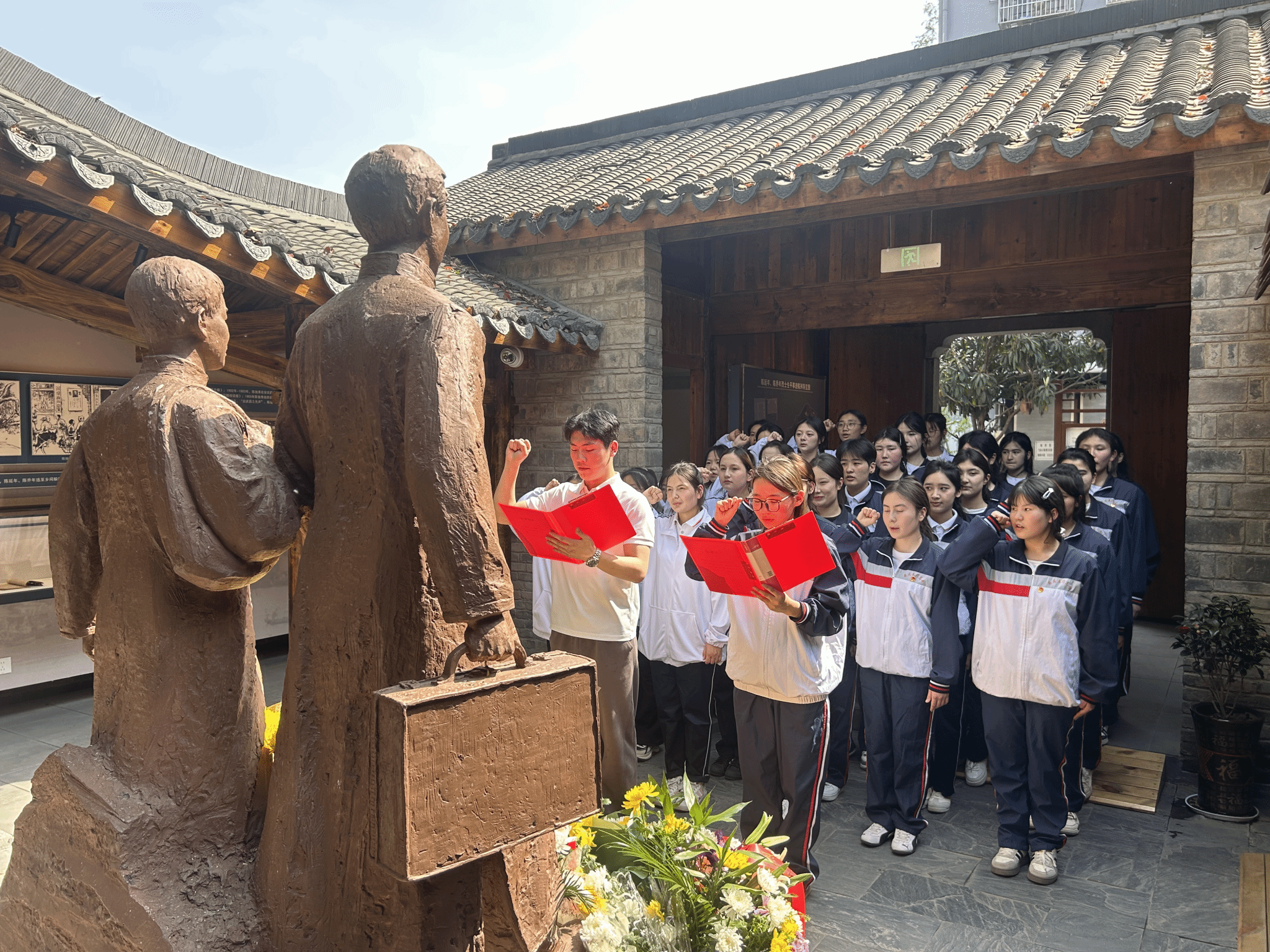 活動第二站,師生代表們來到陳延年陳喬年烈士故居紀念碑前,同學們整齊列隊,靜默肅立,重溫入團誓詞,緬懷革命先烈豐功偉績和崇高精神,表達深切悼念和無限敬仰。