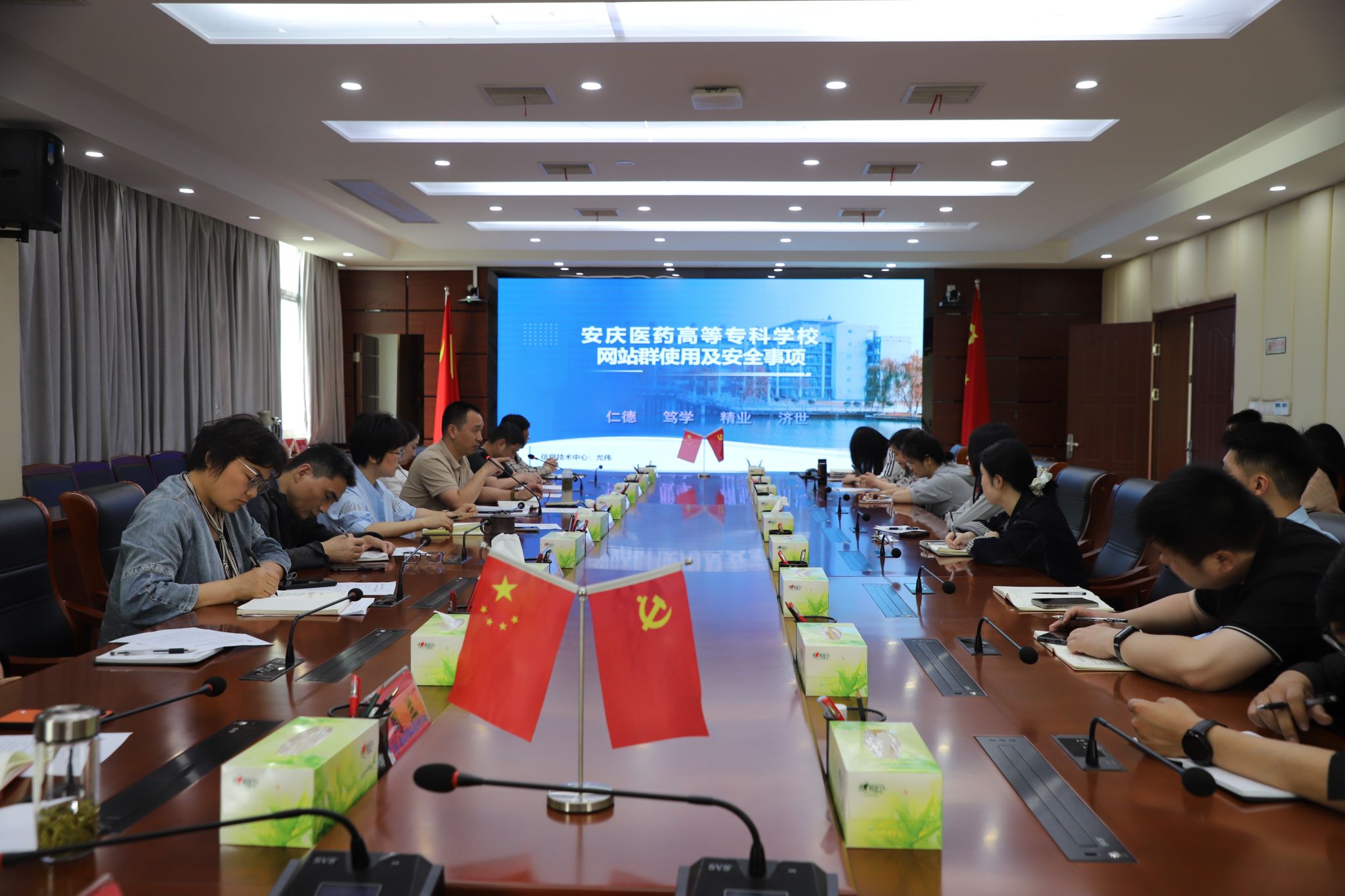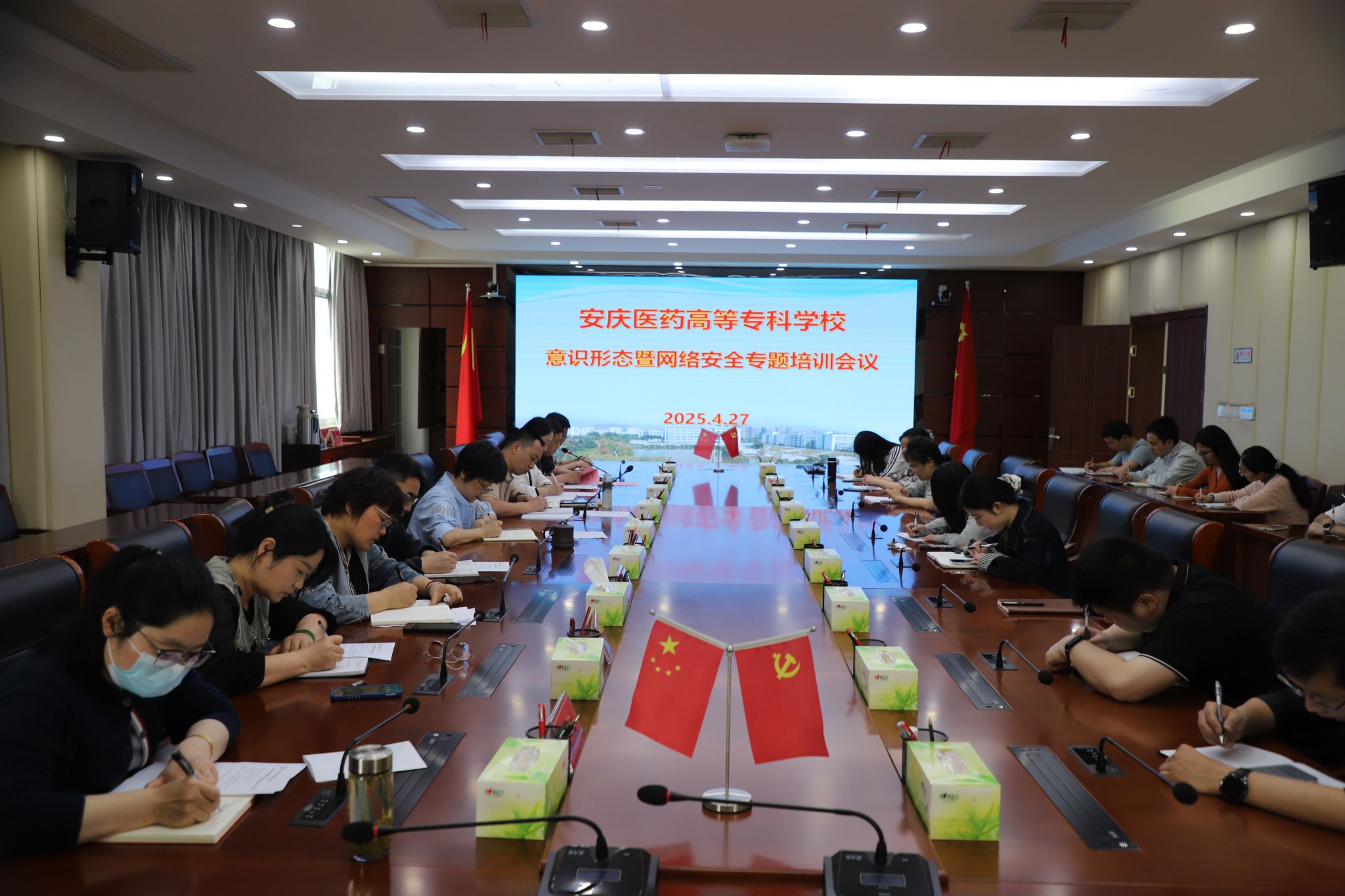 4月27日中午,學校在行政樓三樓大會議室組織召開了意識形態暨網絡安全工作專題培訓會。校黨委委員、宣傳部部長朱雯,各二級黨組織負責人,網站管理員、網絡安全聯絡員及相關工作人員參加培訓。
