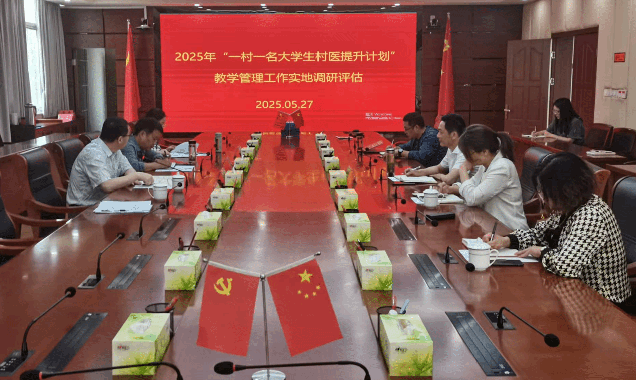 2025年5月27日,省衛生健康委科教處處長李家龍一行來我校,就2024-2025學年安徽省“一村一名大學生村醫提升計劃”教學管理工作進行實地調研。校黨委委員劉毅攜校村醫學歷提升工作專班人員參加調研組座談會議。