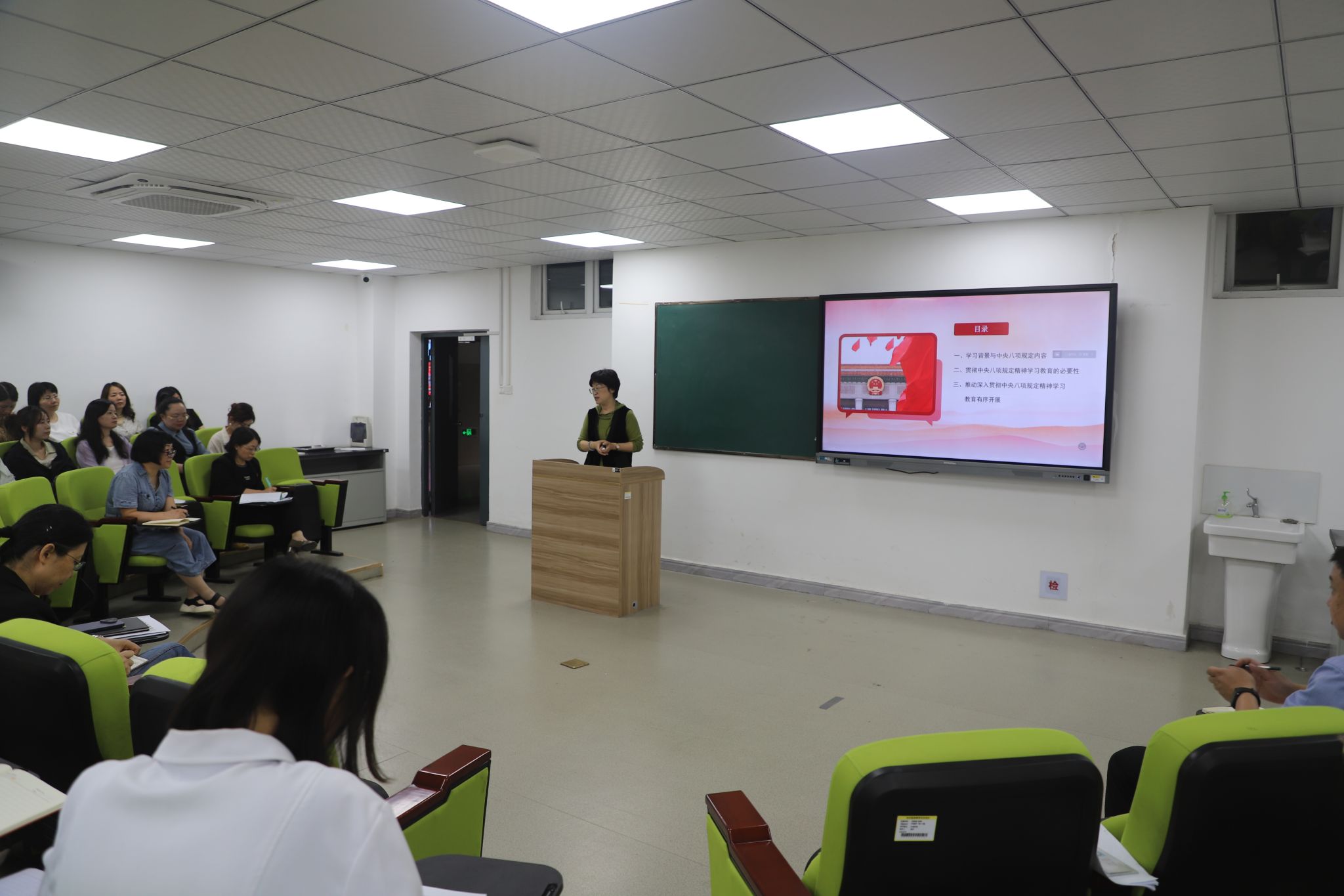 5月28日,校黨委委員、宣傳部部長朱雯為護理學(xué)院全體教職工講授專題黨課——《鍥而不舍貫徹中央八項規(guī)定精神》,并進行基層調(diào)研,傾聽一線心聲,共商學(xué)校發(fā)展大計。
