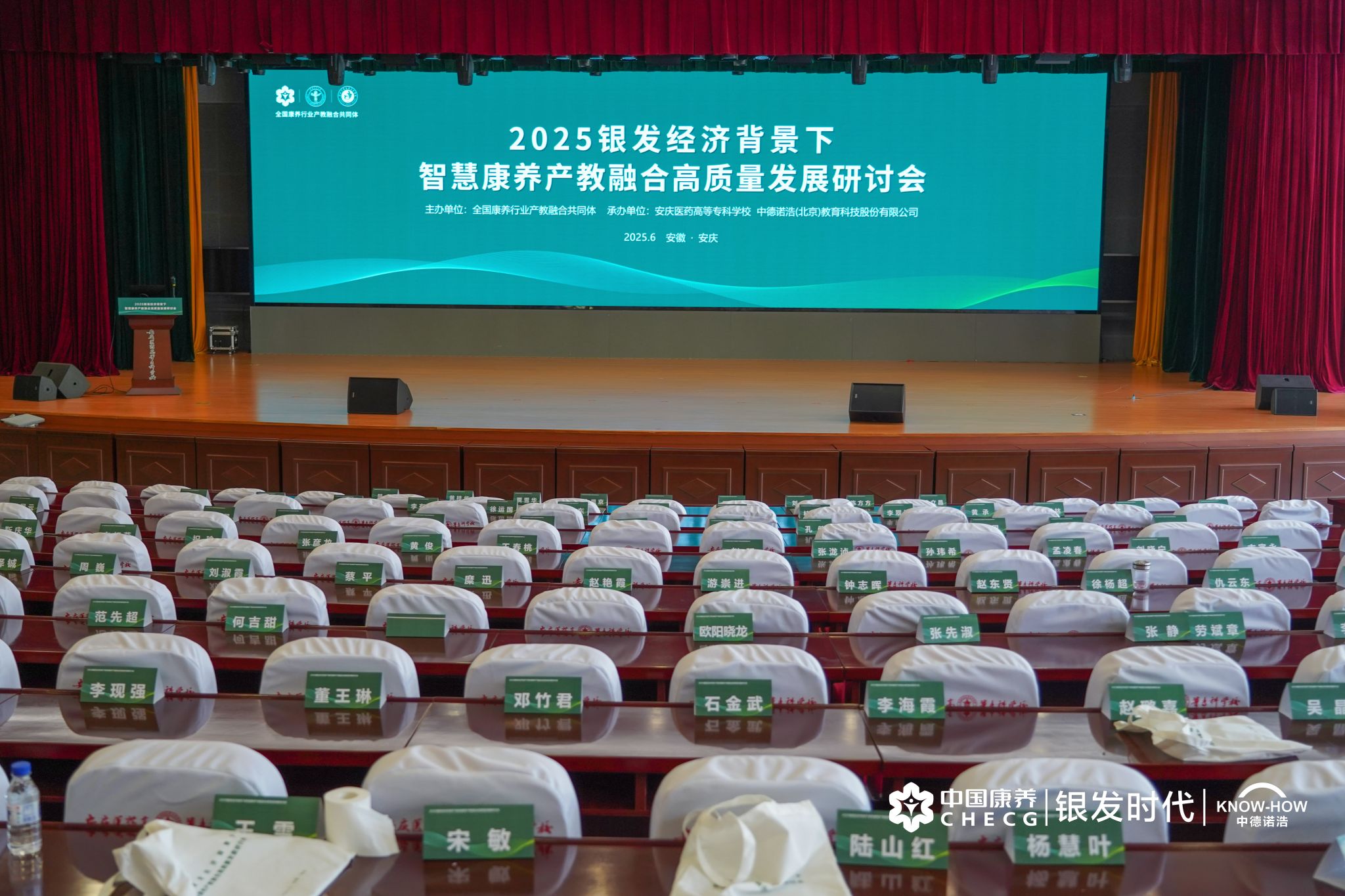 6月13日,“2025銀發經濟背景下智慧康養產教融合高質量發展研討會”在我校隆重召開。本次研討會由全國康養行業產教融合共同體主辦,安慶醫藥高等專科學校、中德諾浩(北京)教育科技股份有限公司承辦。全國老齡工作委員會第一屆專家委員會委員、中國老齡科學研究中心副主任黨俊武,常州大學原黨委書記史國棟、中國職業技術教育學會康養康育專業委員會執行主任,滄州醫學高等專科學校原黨委書記劉健,中國職業技術教育學會康養康育專業委員會副主任、安慶市人大常委會黨組成員、副主任葉林霞,邵陽工業職業技術學院黨委書記歐陽學,萊蕪職業技術學院黨委副書記、校長徐運國,畢節職業技術學院黨委副書記、校長桂祥友,中國健康養老集團研究院院長張晉,中德諾浩(北京)教育科技股份有限公司總裁楚萌以及校黨委副書記、校長朱慶豐出席會議。來自行業企業的領導、康養產業專家、職業教育專家及53所職業院校的領導、專業帶頭人等共150余人參加了本次會議,共同為銀發經濟背景下康養產教融合發展集眾智、謀良策。