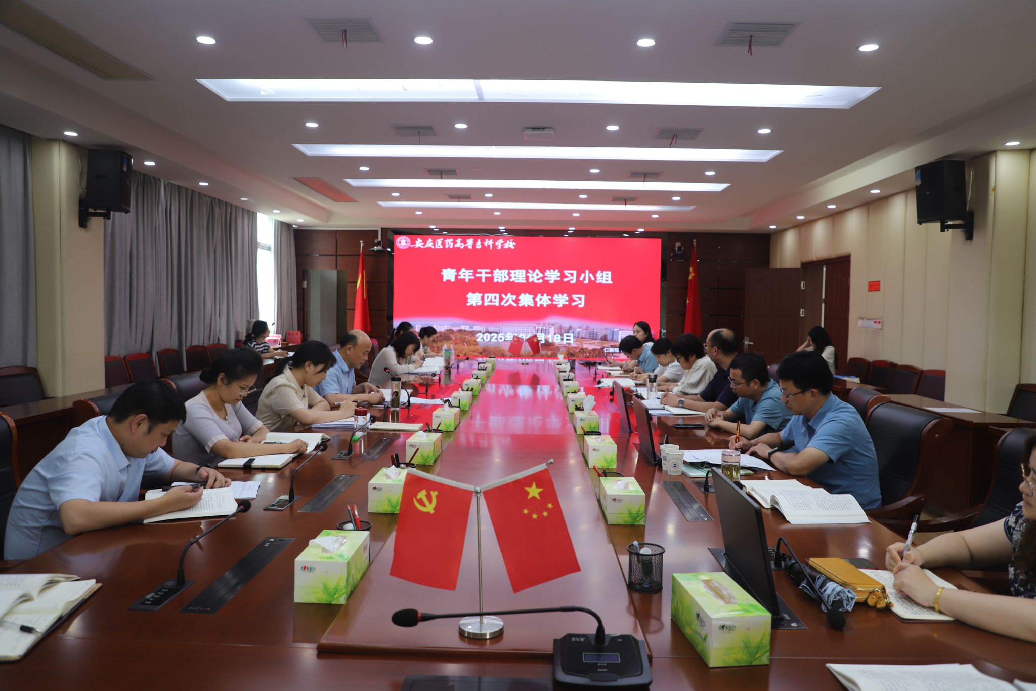 為持續深化紀律作風建設,筑牢年輕干部廉潔自律防線,提升履職能力,6月18日下午,學校青年理論學習小組在行政樓三樓大會議召開第四次集體學習研討會議。校黨委委員、組織部部長曹懷主持會議。