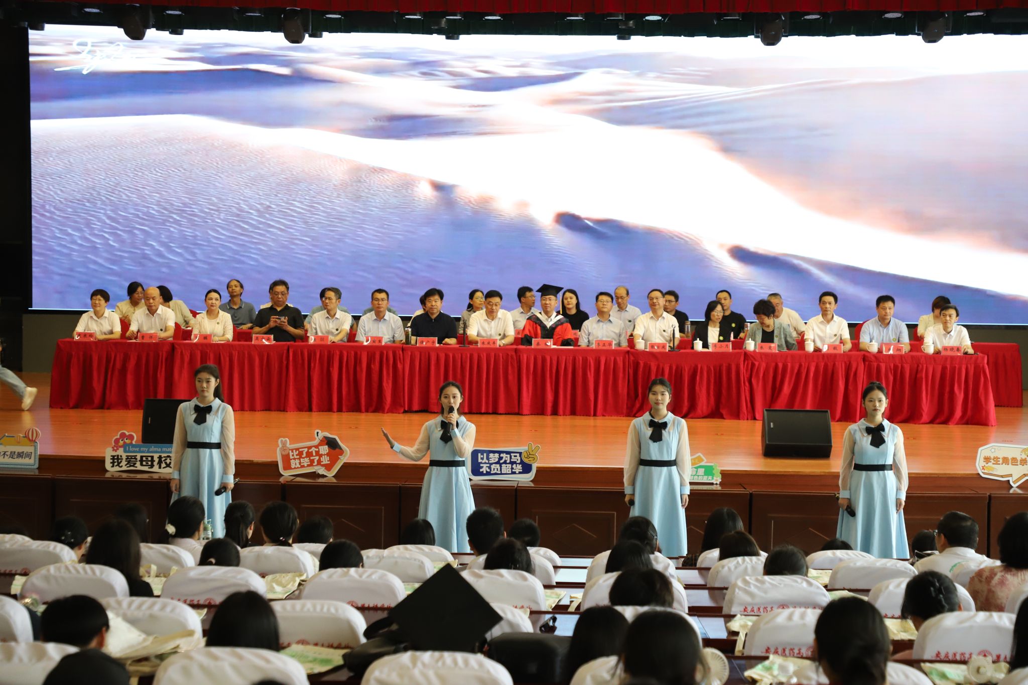 典禮現(xiàn)場(chǎng)氣氛熱烈,開(kāi)始前播放了2025屆畢業(yè)季MV《入海》,熟悉的面孔、難忘的畫面、溫情的歌曲,讓現(xiàn)場(chǎng)的師生共同回憶起在校期間的點(diǎn)點(diǎn)滴滴,隨后畢業(yè)生代表帶來(lái)聲情并茂的朗誦《禮贊青春》和動(dòng)聽(tīng)的歌曲《一路生花》,讓畢業(yè)生們感慨萬(wàn)千,最后在激昂的《醫(yī)職校歌》的歌聲中典禮圓滿結(jié)束。