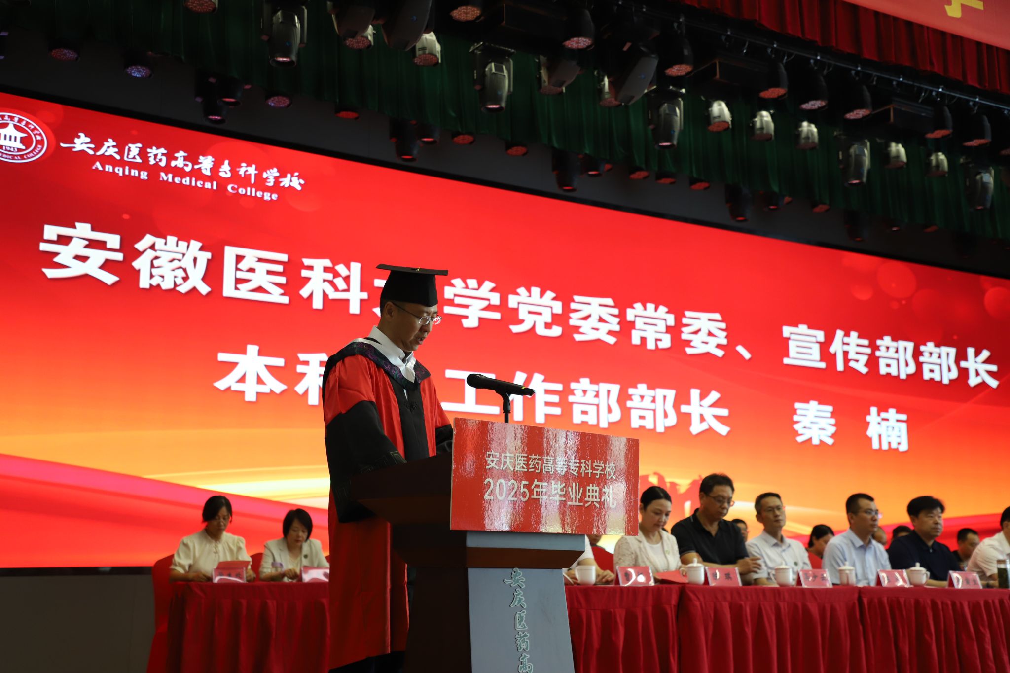 校黨委委員、黨政辦主任陳琪宣讀了《安慶醫(yī)藥高等專科學(xué)校2025屆專科畢業(yè)生畢業(yè)的決定》和《2025年安徽省和校級(jí)優(yōu)秀畢業(yè)生的決定》。