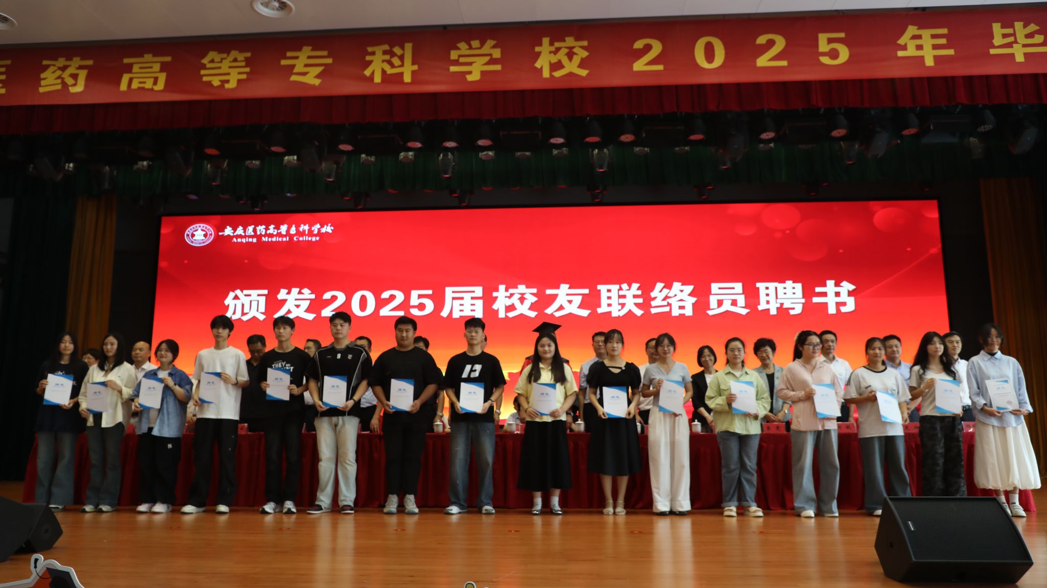 典禮上,各位領(lǐng)導(dǎo)和來(lái)賓為畢業(yè)生代表頒發(fā)優(yōu)秀畢業(yè)生證書和2025屆校友聯(lián)絡(luò)員聘書。