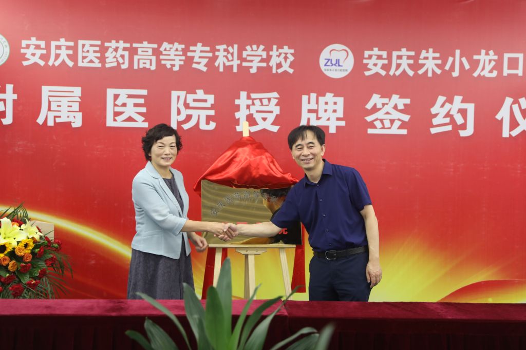 在熱烈友好的氛圍中,葉林霞和朱小龍共同為“安慶醫藥高等??茖W校附屬醫院”揭牌。姚文兵和朱小龍現場簽署合作協議。共同開啟校院合作及深化教育教學模式改革新篇章。(撰文:劉紅燕;供圖:黃駿;審核:汪瑞)