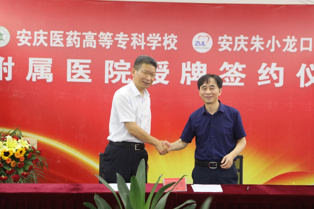 校院融合促發展,攜手共建創未來!為深化醫教研協同創新,探索培養高素質口腔醫學人才,7月29日上午,安慶朱小龍口腔醫院成為我校非直屬附屬醫院揭牌簽約儀式在醫院東院區舉行。校黨委書記葉林霞,校黨委副書記、校長姚文兵,副校長朱慶豐,校黨委委員朱雯,安慶朱小龍口腔醫院院長朱小龍以及學校相關人員和醫院員工代表參加揭牌儀式。
