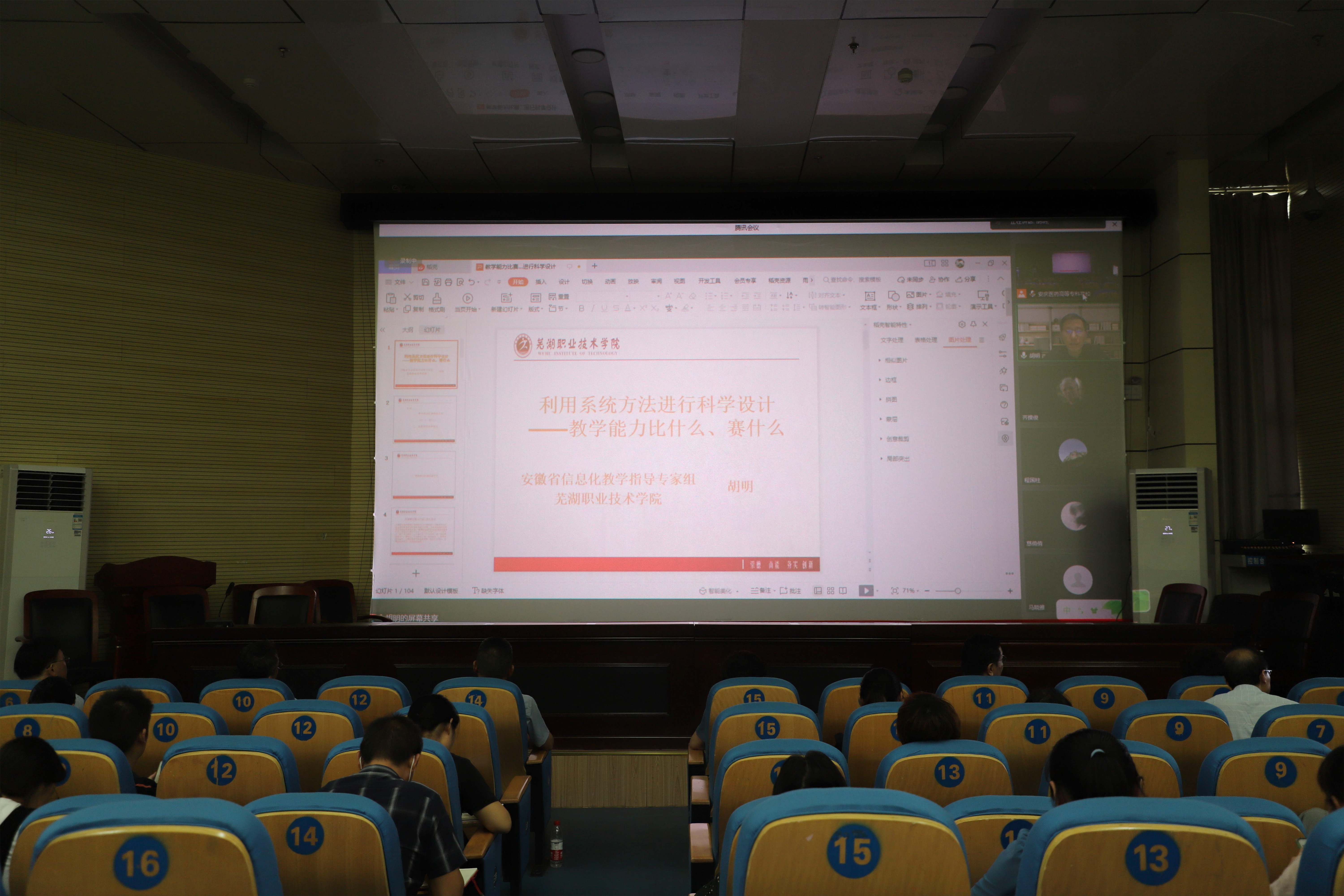 胡明作題為《教學能力大賽之利用系統方法進行教學設計》專題講座。教育部主辦的全國職業院校教師教學能力比賽,是職業院校教育教學改革的燈塔和風向標。他從教學能力大賽基本情況、教學能力大賽比什么、賽什么,系統方法科學設計三個方面進行了詳細解讀,重點分析了2022年國賽在比賽方式、獎勵辦法、參賽材料、決賽程序等方面的變化。