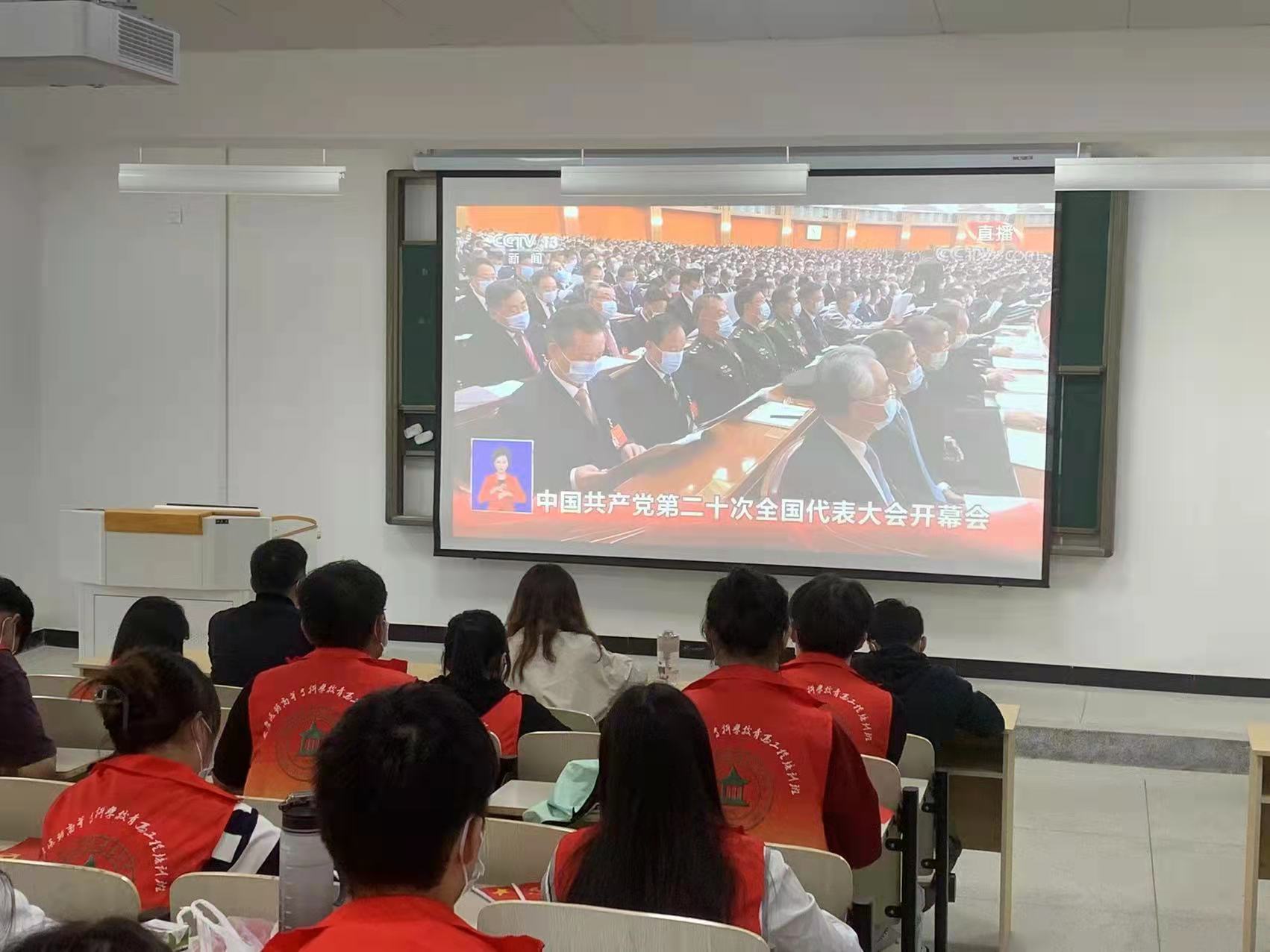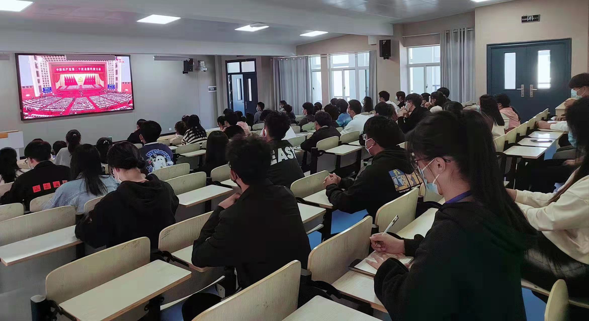 黨的二十大是在全黨全國各族人民邁上全面建設社會主義現代化國家新征程、向第二個百年奮斗目標進軍的關鍵時刻召開的一次十分重要的大會,是全黨全國各族人民政治生活中的一件大事。在觀看直播現場,廣大師生邊看邊做好記錄,不時以熱烈的掌聲回應大會精彩報告。
