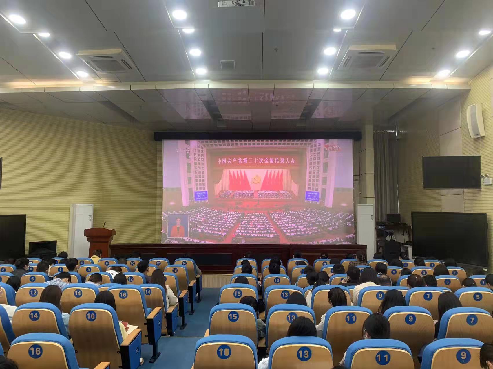 三級機構負責人、馬院專職教師、專兼職輔導員在圖書館學術報告廳集中收看黨的二十大開幕會盛況
