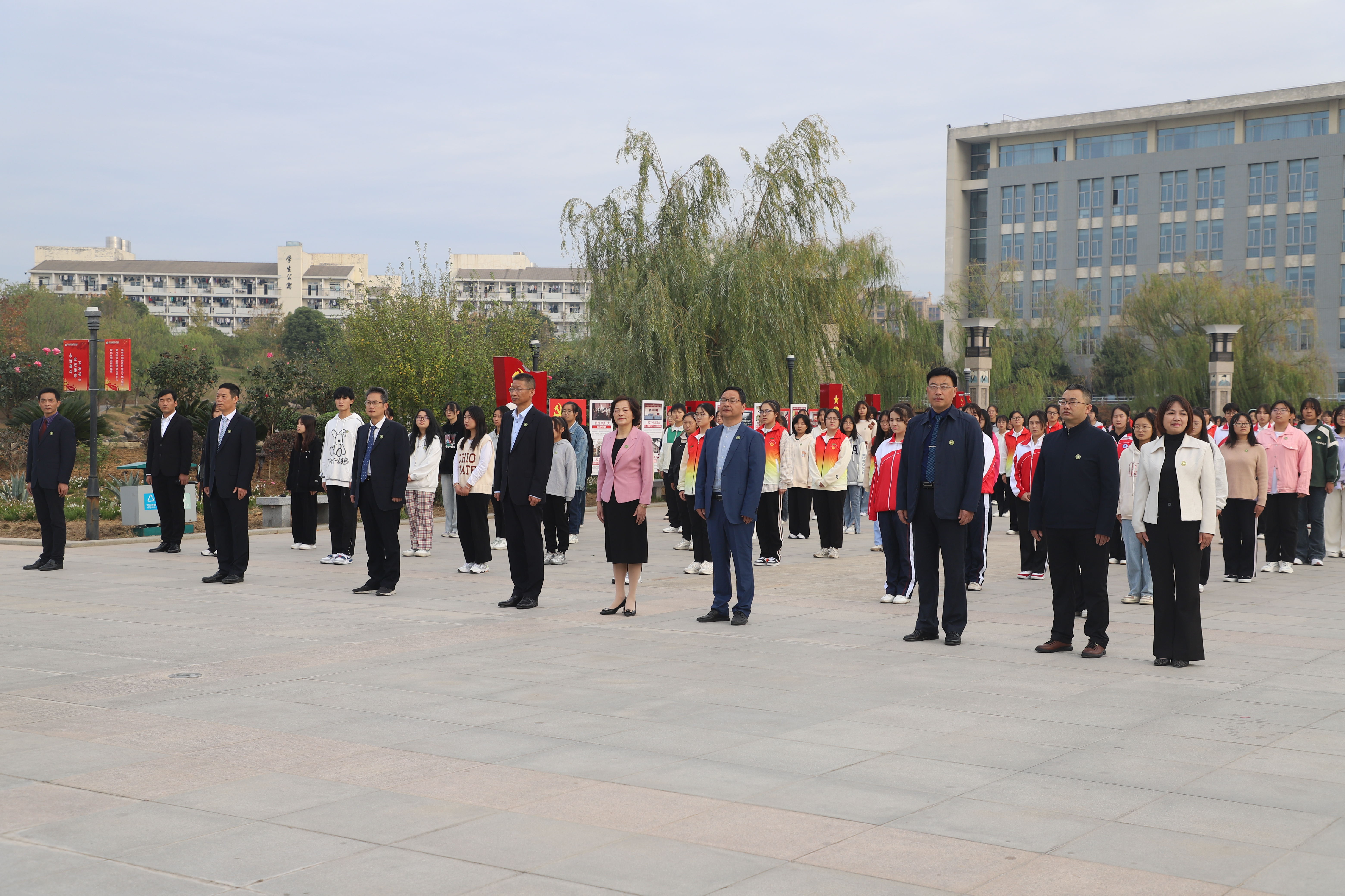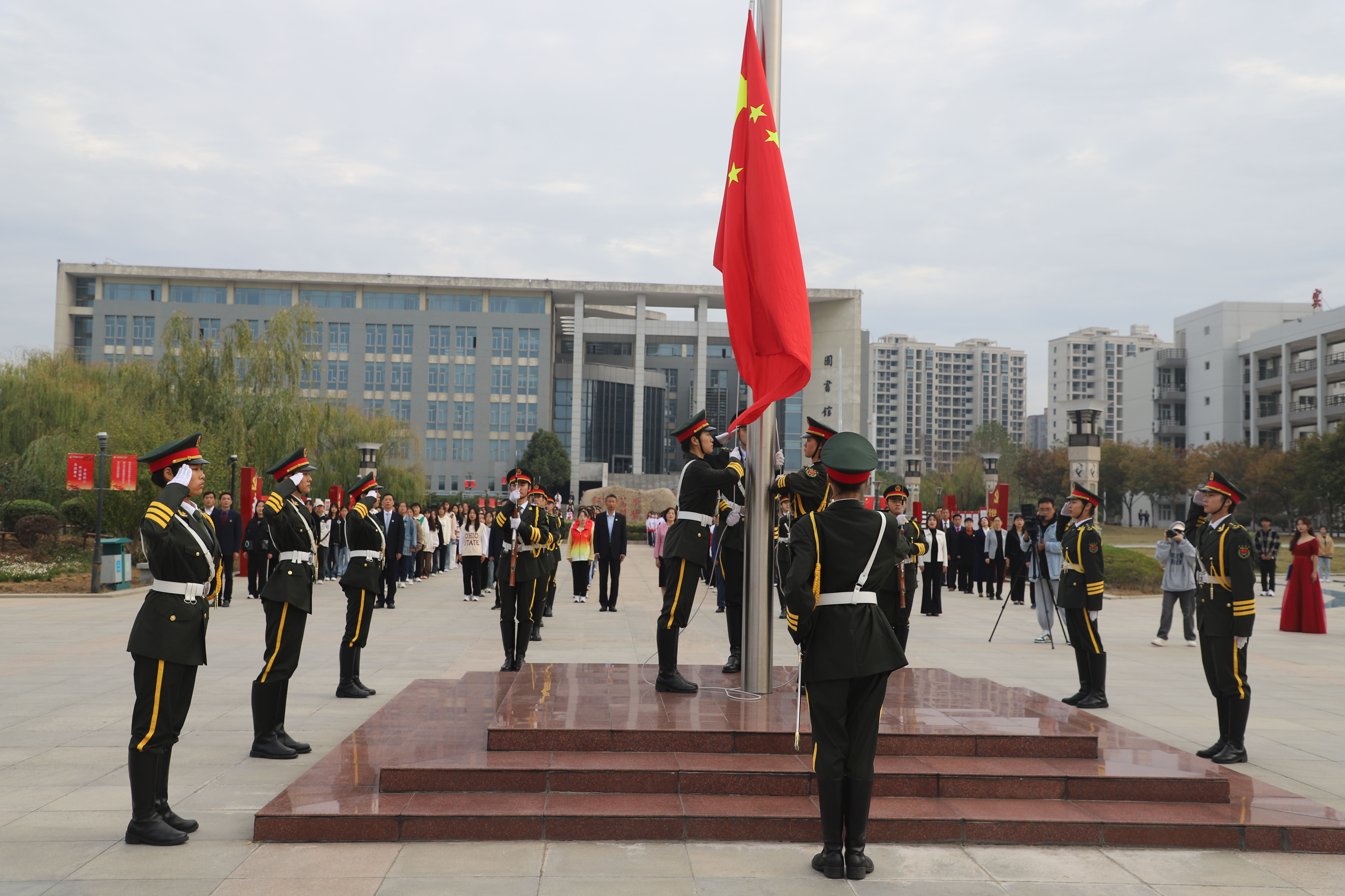 七十九載風雨兼程,七十九載歲月如歌。在黨的二十大勝利閉幕之際,我校迎來了79周年華誕。10月25日校慶日當天,校領導葉林霞、姚文兵等黨政班子全體成員,全校副科級以上干部、各學院青年教師、學生代表以及國旗護衛隊全體成員齊聚至善廣場,參加慶祝建校79周年升旗儀式,為母校送上最美好的祝福。