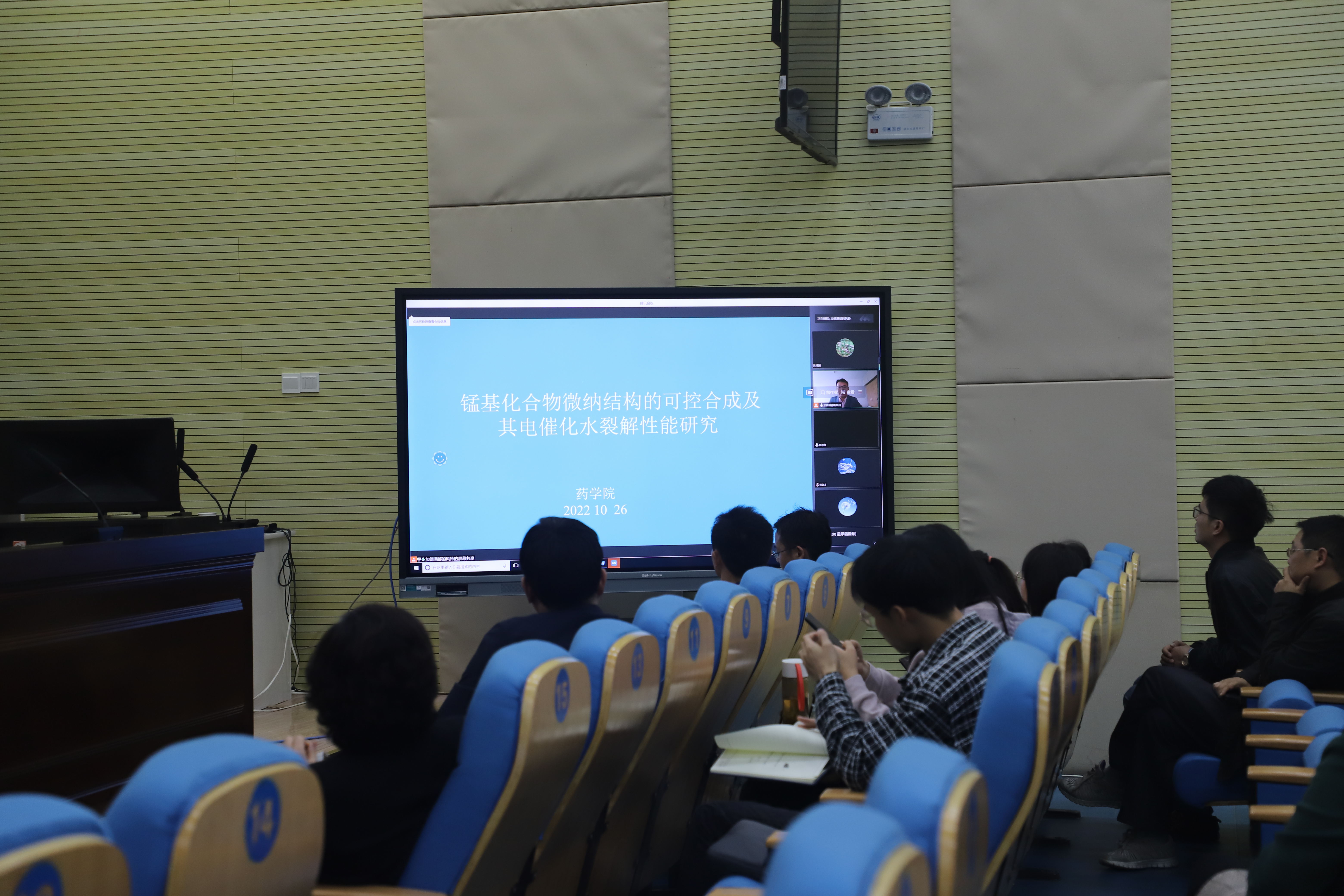 遠在北京訪學的施華峰博士通過線上方式匯報了“錳基化合物微納結構的可控合成及其電催化水裂解性能研究”,探討了從不同環境中合成穩定性及功能性強的多種催化劑。