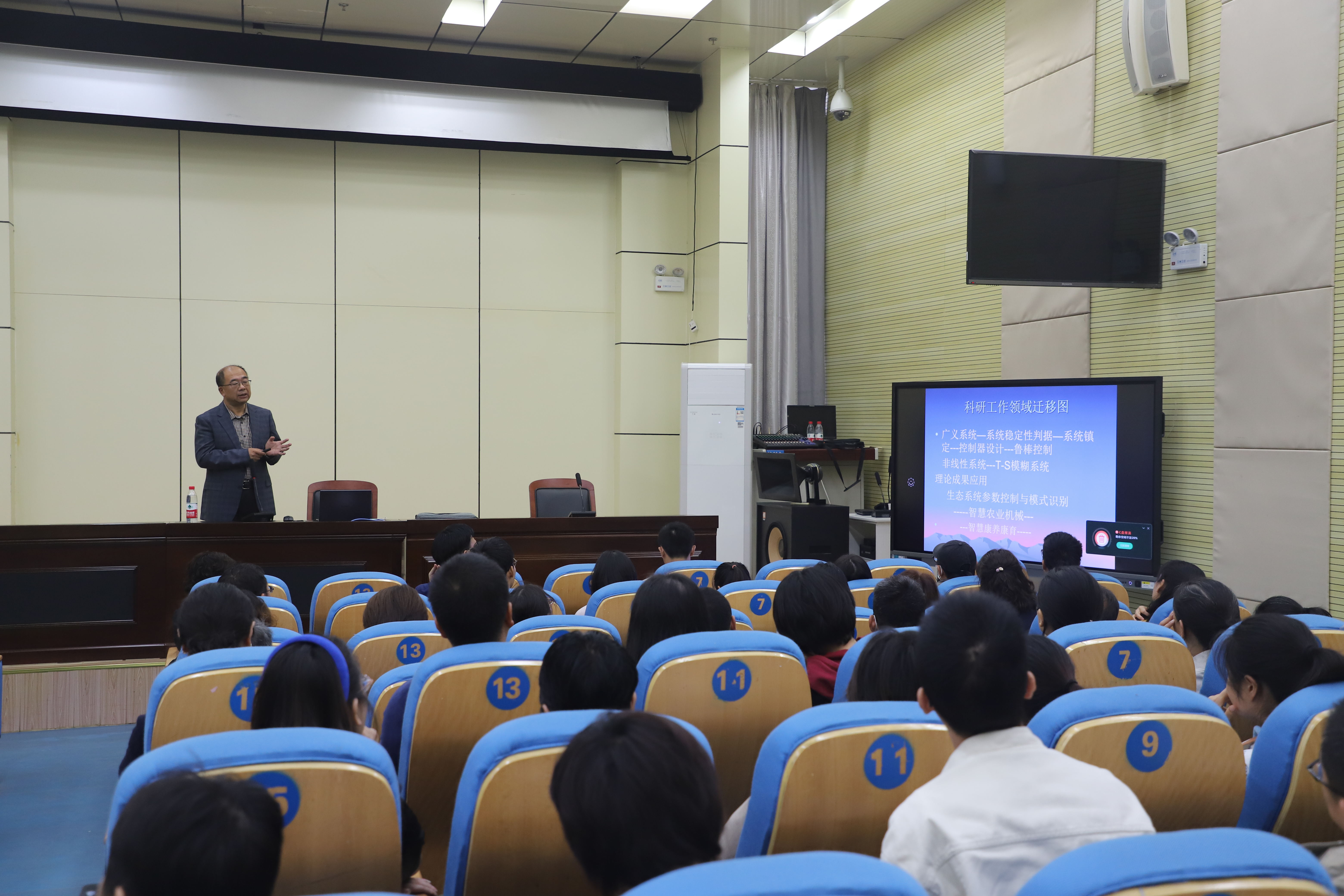 論壇首場報告由馮毅夫博士、教授主講。馮教授以“T-S模糊廣義系統穩定性分析與控制器設計及應用”為題進行了學術講座,講座從理論體系、研究方法及課題申報等方面分享了自己的研究成果及研究經驗。