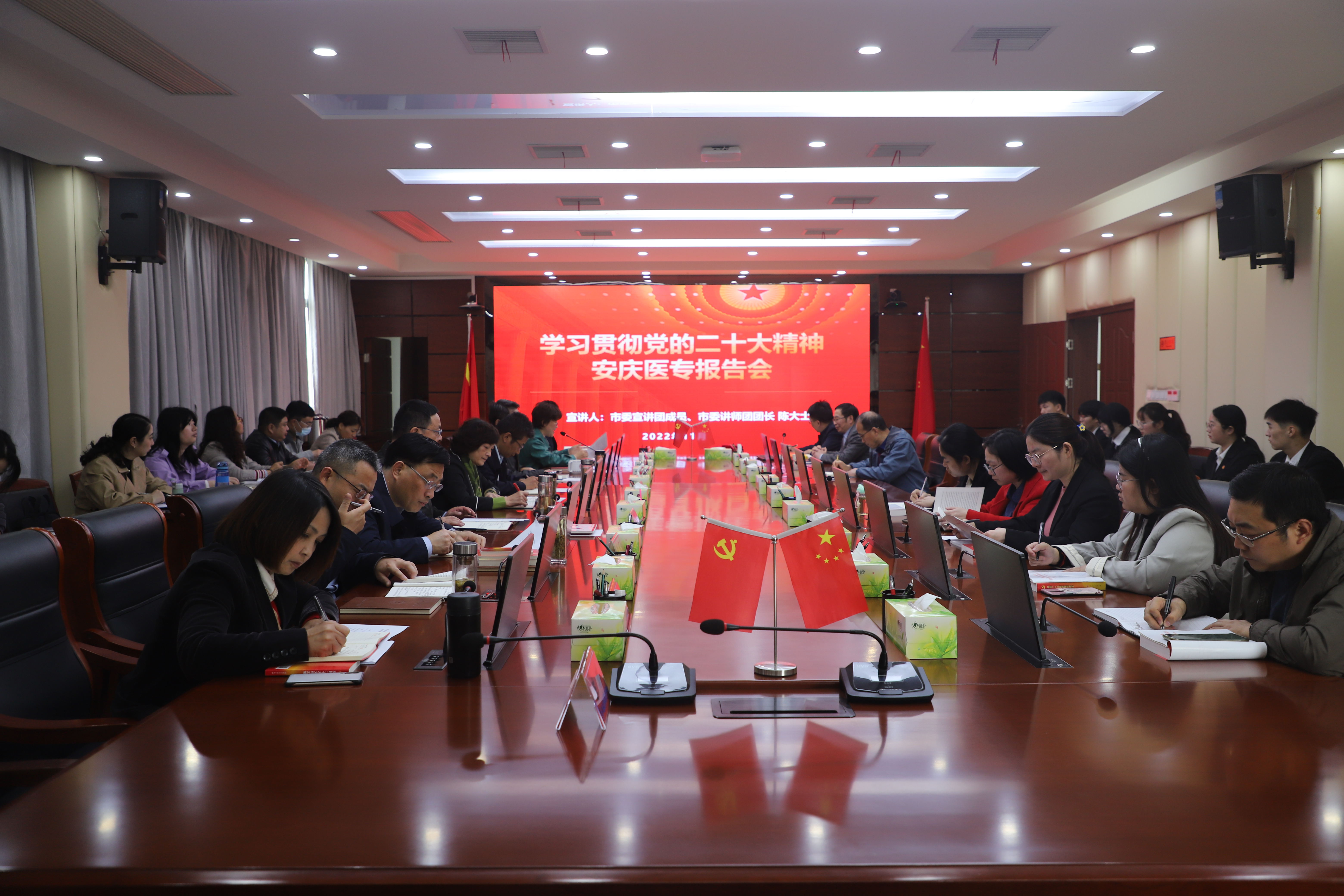 培訓會上,陳大士以《學習貫徹黨的二十大精神》為題,從黨的二十大的主要成果、深刻領會黨的二十大的重大意義等方面重點闡述了黨的二十大召開的重大意義,從黨的二十大的主題、過去5年的工作和新時代10年的偉大變革、馬克思主義中國化時代化、中國式現代化等要點系統講解了黨的二十大會議的精神實質。報告最后,他從抓好大學習,做到學深學透、抓好大宣傳,做到入腦入心、抓好大貫徹,做到落地落實等方面對宣講團成員作了具體的指導,激勵我校宣講團成員矢志不渝、篤行不怠,不負時代、不負人民。