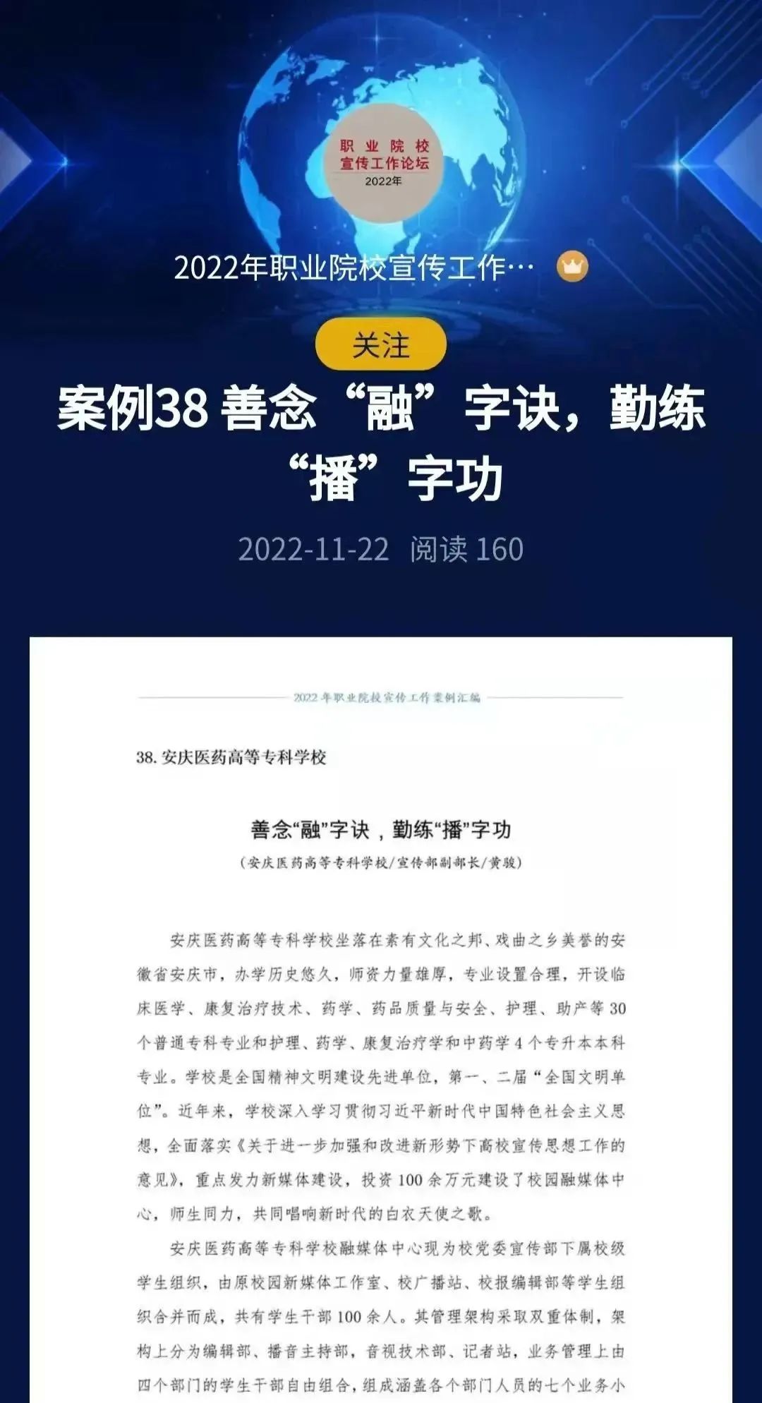 此次論壇收到來自全國(guó)各地職業(yè)院校的高質(zhì)量宣傳思想工作案例材料,經(jīng)整理最終形成了收錄有46所院校優(yōu)秀宣傳工作案例的《職業(yè)院校宣傳工作案例匯編》集,我校報(bào)送的《善念“融”字訣,勤練“播”字功》案例成功入選,展示了我校宣傳思想工作的特色和取得的成果。