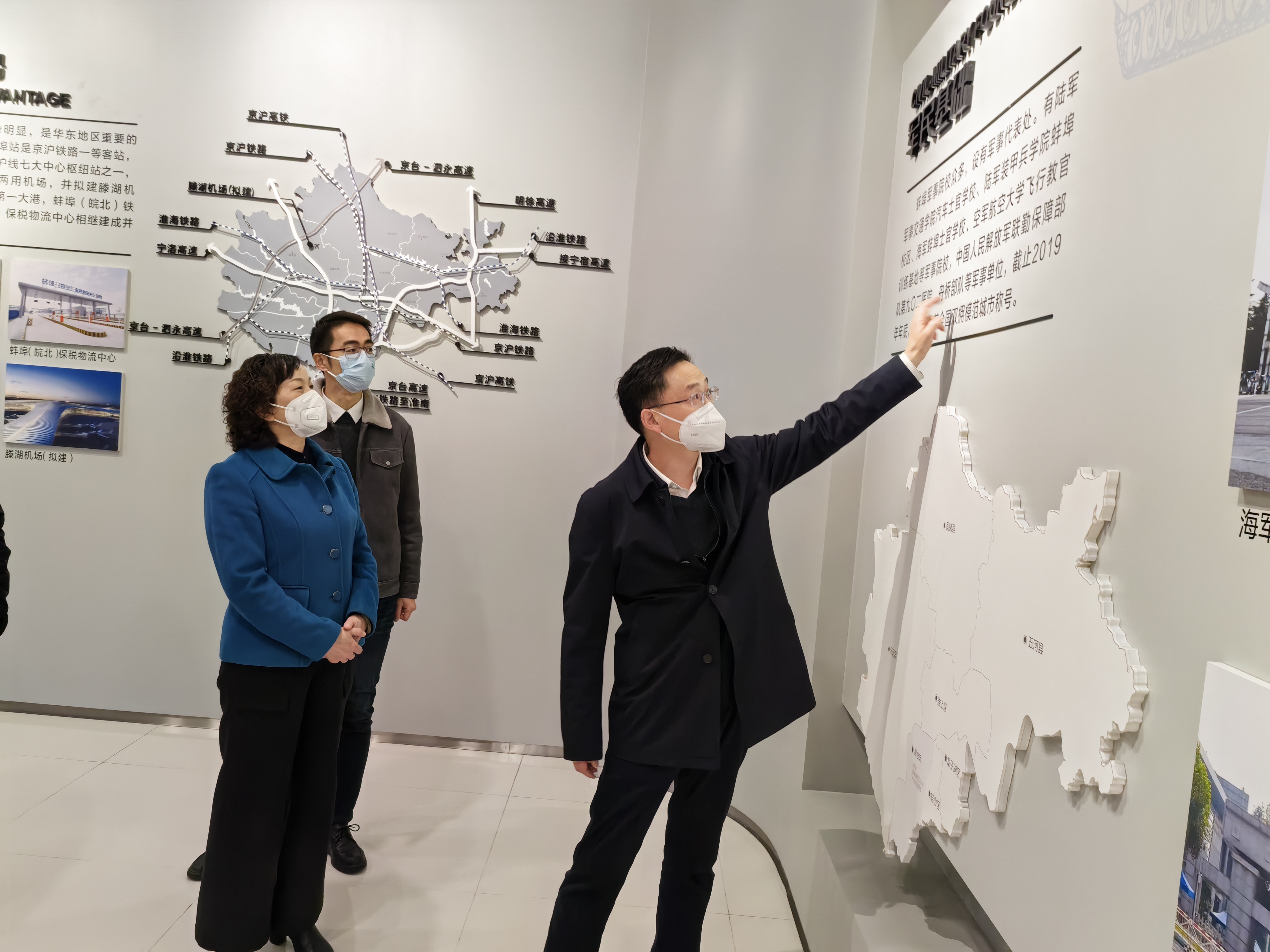 1月13日,蚌埠市委常委、市委秘書長(zhǎng)、市委政法委書記郭家滿熱情接待了考察組一行,并親自陪同考察了中國(guó)(安徽)自由貿(mào)易試驗(yàn)區(qū)蚌埠片區(qū)招商中心、禹會(huì)創(chuàng)新館、蚌埠工業(yè)博物館,了解中國(guó)(安徽)自貿(mào)區(qū)蚌埠片區(qū)基本情況及其創(chuàng)新成果。