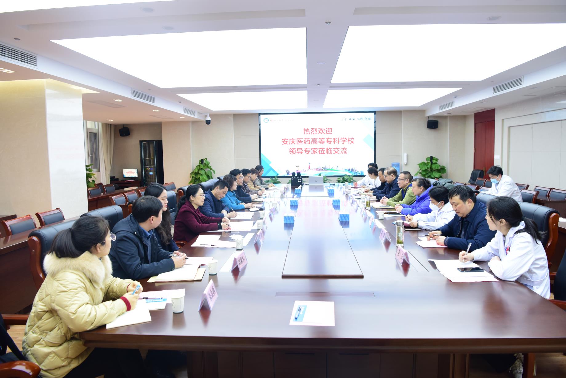 1月12日上午,在蚌埠醫(yī)學(xué)院交流學(xué)習(xí)中,該院黨委書記蔣家平、院長(zhǎng)翁建平、黨委副書記姚文兵、副院長(zhǎng)陳昌杰,紀(jì)委書記馬哲銳等領(lǐng)導(dǎo)熱情接待了葉林霞一行,并重點(diǎn)介紹了學(xué)院在人才培養(yǎng)、師資隊(duì)伍建設(shè)、專業(yè)建設(shè)等方面的經(jīng)驗(yàn)和做法,同時(shí)表示將結(jié)合學(xué)校更名,支持安慶醫(yī)藥高等專科學(xué)校專業(yè)人才培養(yǎng)和專業(yè)建設(shè)。葉林霞對(duì)蚌埠醫(yī)學(xué)院長(zhǎng)期以來(lái)對(duì)學(xué)校的關(guān)心支持表示感謝,請(qǐng)求蚌醫(yī)大手拉小手,給予更多幫助,要求相關(guān)部門和二級(jí)學(xué)院要緊緊依托蚌埠醫(yī)學(xué)院的優(yōu)質(zhì)教育教學(xué)資源,進(jìn)一步提升人才培養(yǎng)質(zhì)量和專業(yè)建設(shè)水平。雙方還就人才引進(jìn)、教科研賽、學(xué)生培養(yǎng)、專業(yè)建設(shè)等工作進(jìn)行了交流探討。