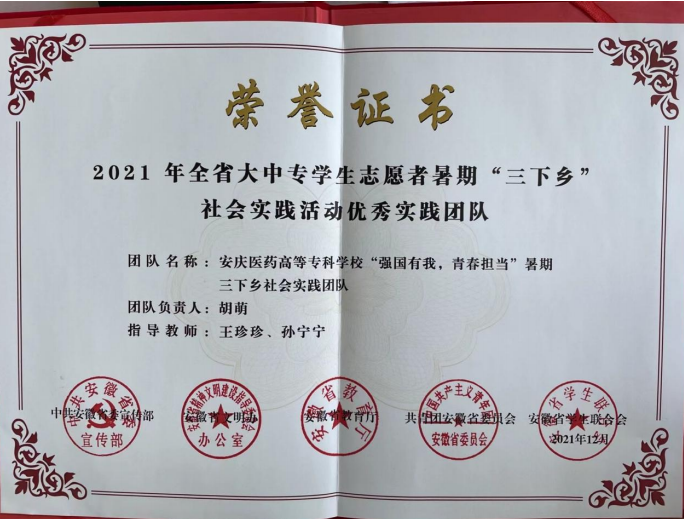 醫學院榮獲安徽省暑期“三下鄉”優秀社會實踐團隊