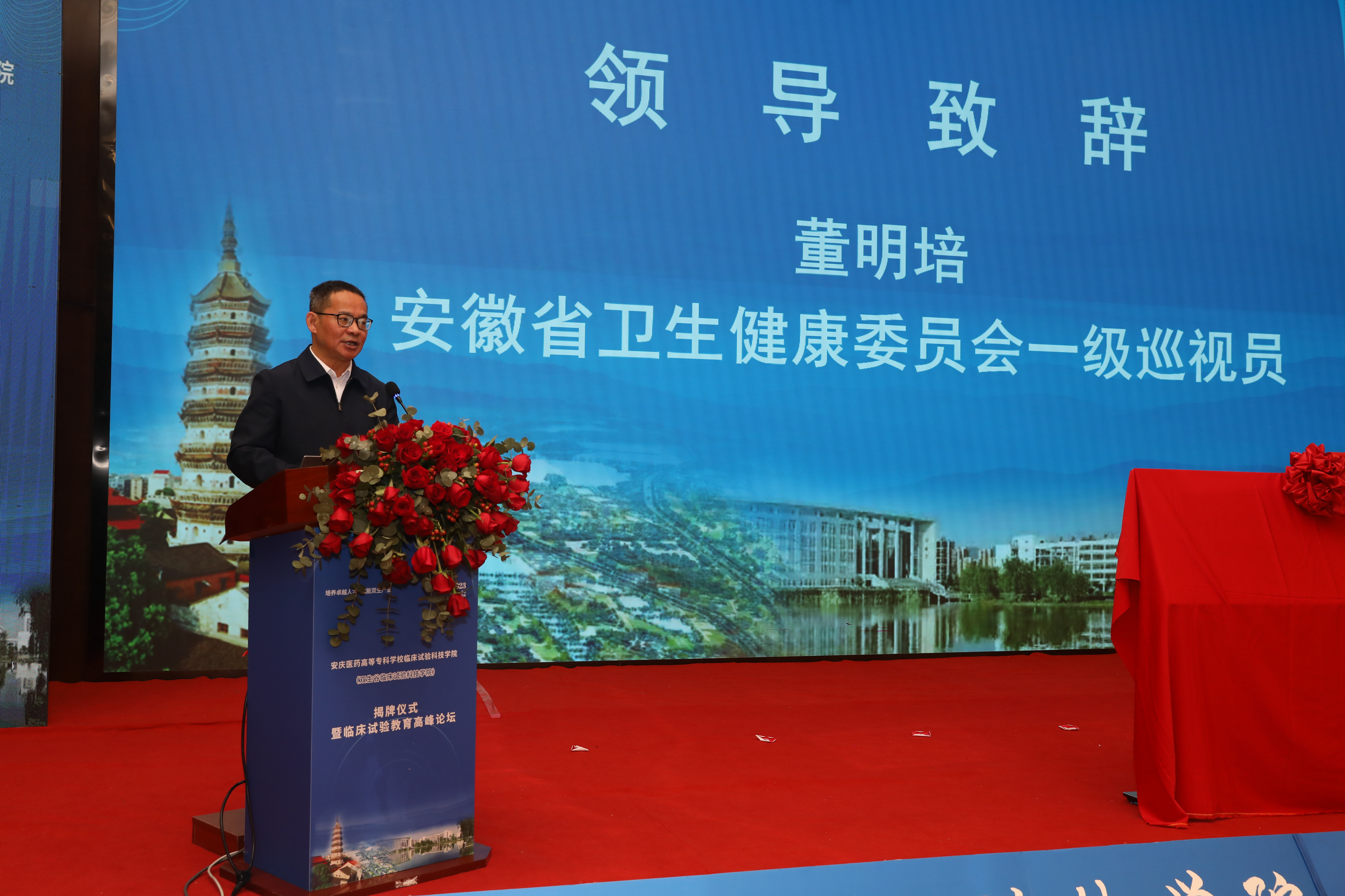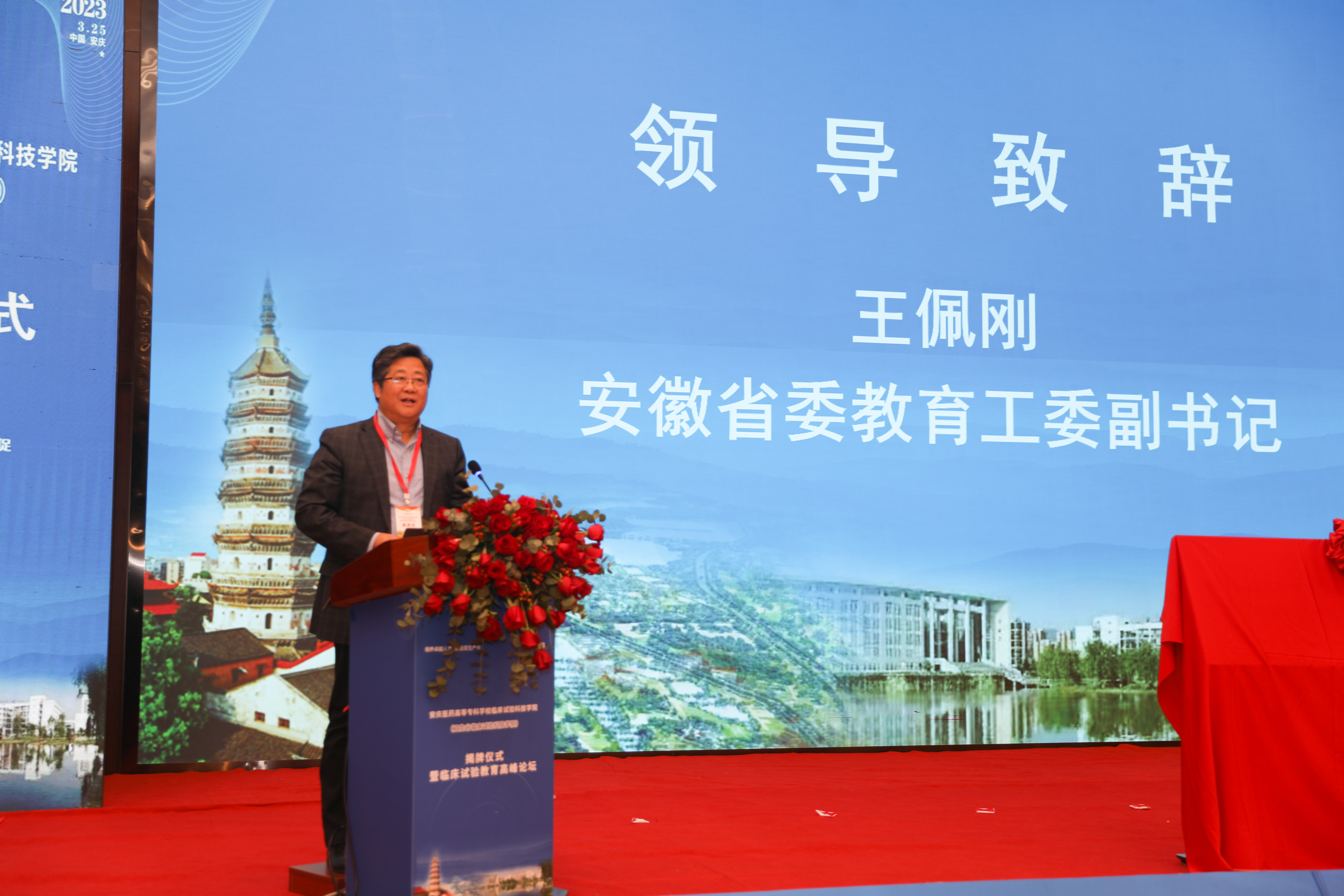 王佩剛代表安徽省委教育工委,省教育廳表示,安慶醫藥高等專科學校臨床試驗科技學院(雙生谷臨床試驗科技學院)”的成立是我省高等教育發展的一件喜事和大事,是安慶市奮力推進高等教育提質培優的重要舉措。王佩剛對臨床試驗科技學院的工作提出了三點要求,一是要把人才培養質量擺在更加突出的位置。二是要實現創新鏈、產業鏈、人才鏈的深度融合。三是要把臨床試驗科技學院辦出特色,辦出成果。王佩剛表示,省委教育工委、省教育廳將一如既往支持安慶高等教育內涵式高質量發展,大力支持醫學高等教育提高辦學層次,大力支持臨床試驗科技學院專業建設和人才培養工作。