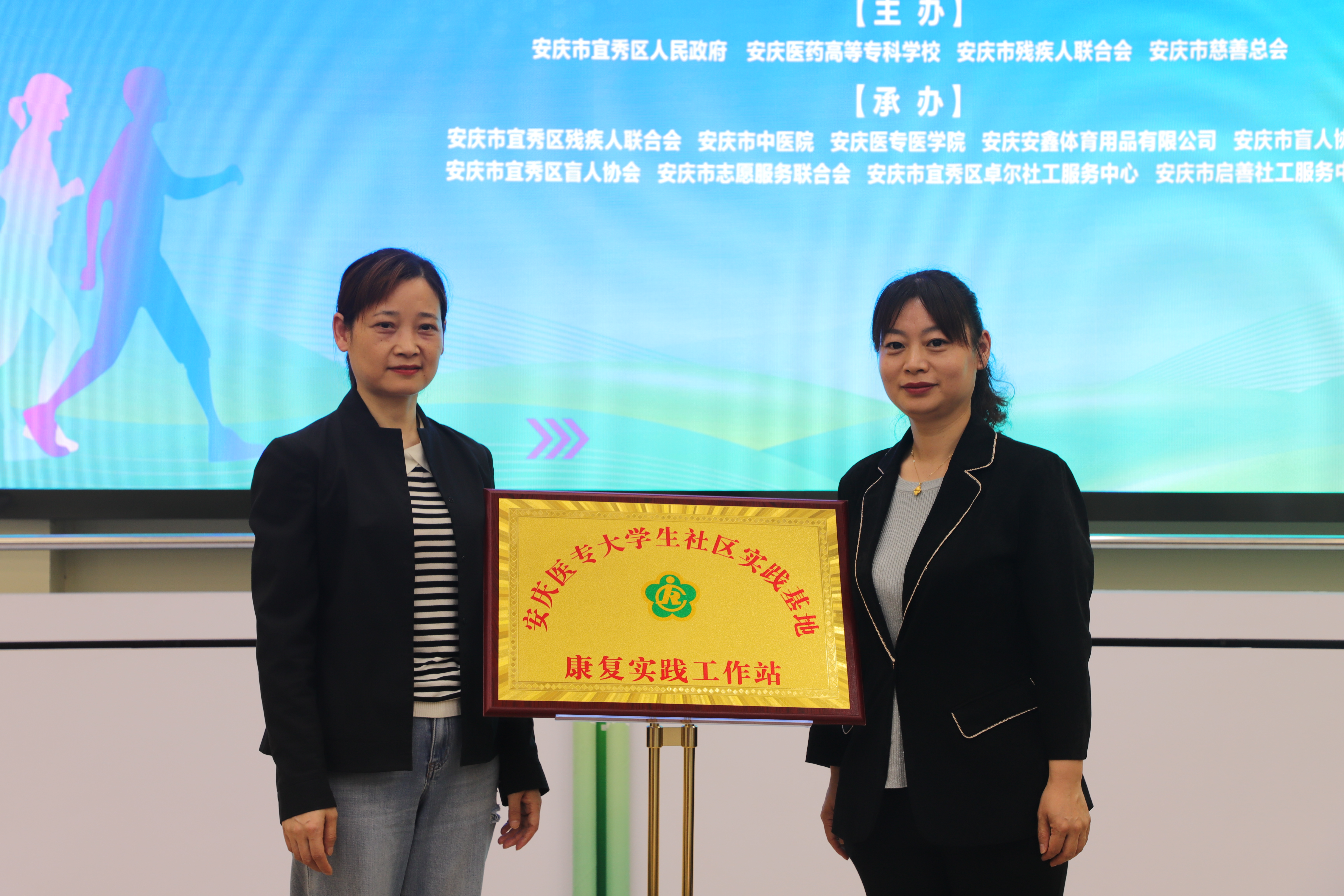 啟動儀式上,與會領導為獲得宜秀區(qū)“最美殘疾人自強模范”、“最美殘疾人工作者”稱號的14名同志頒發(fā)榮譽證書,安慶醫(yī)專醫(yī)學院與宜秀區(qū)殘聯(lián)共同為“安慶醫(yī)專大學生社區(qū)實踐基地康復實踐工作站”揭牌;安慶醫(yī)專“青醫(yī)”大學生服務宜秀區(qū)助殘志愿隊成立。
