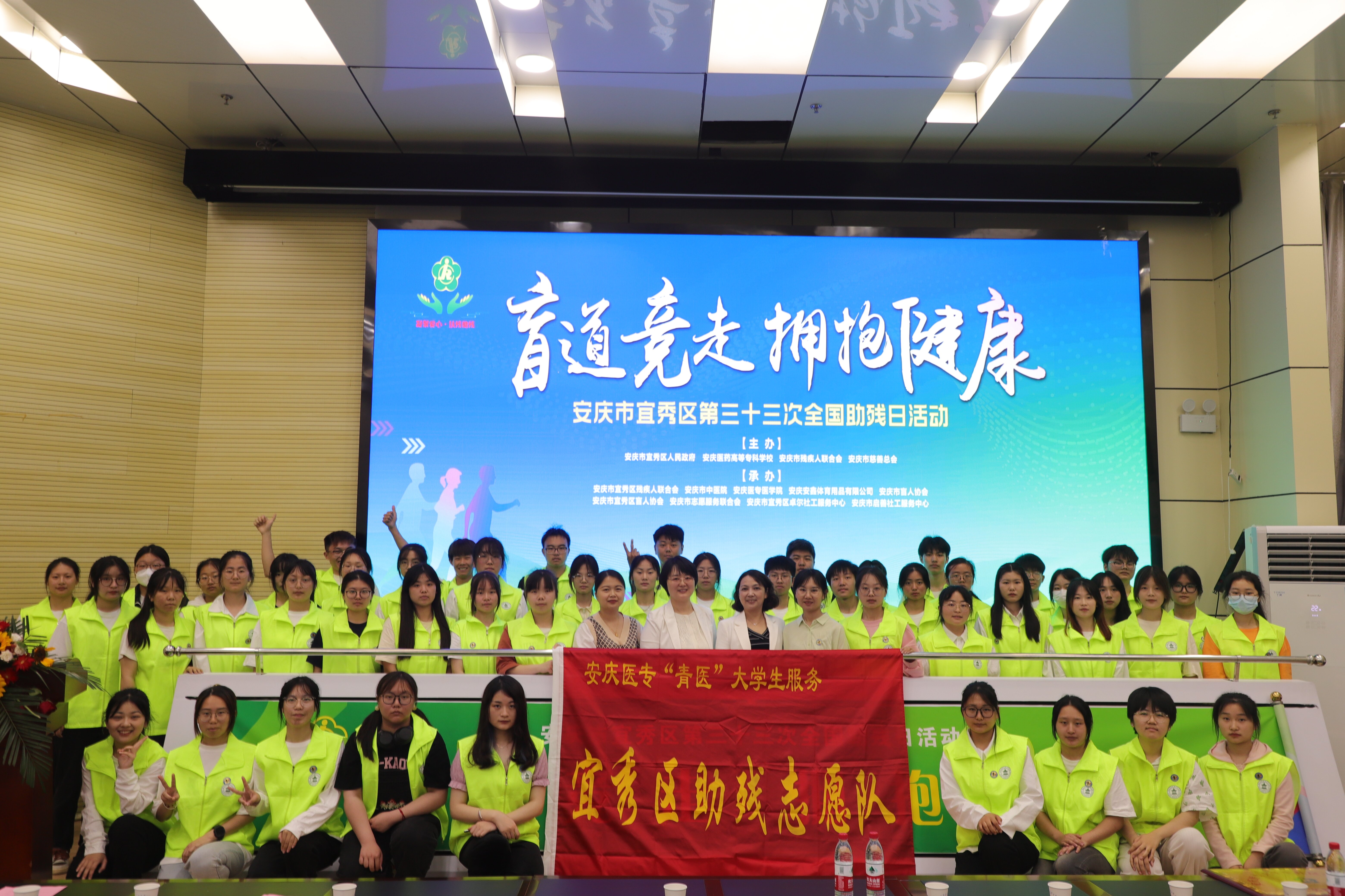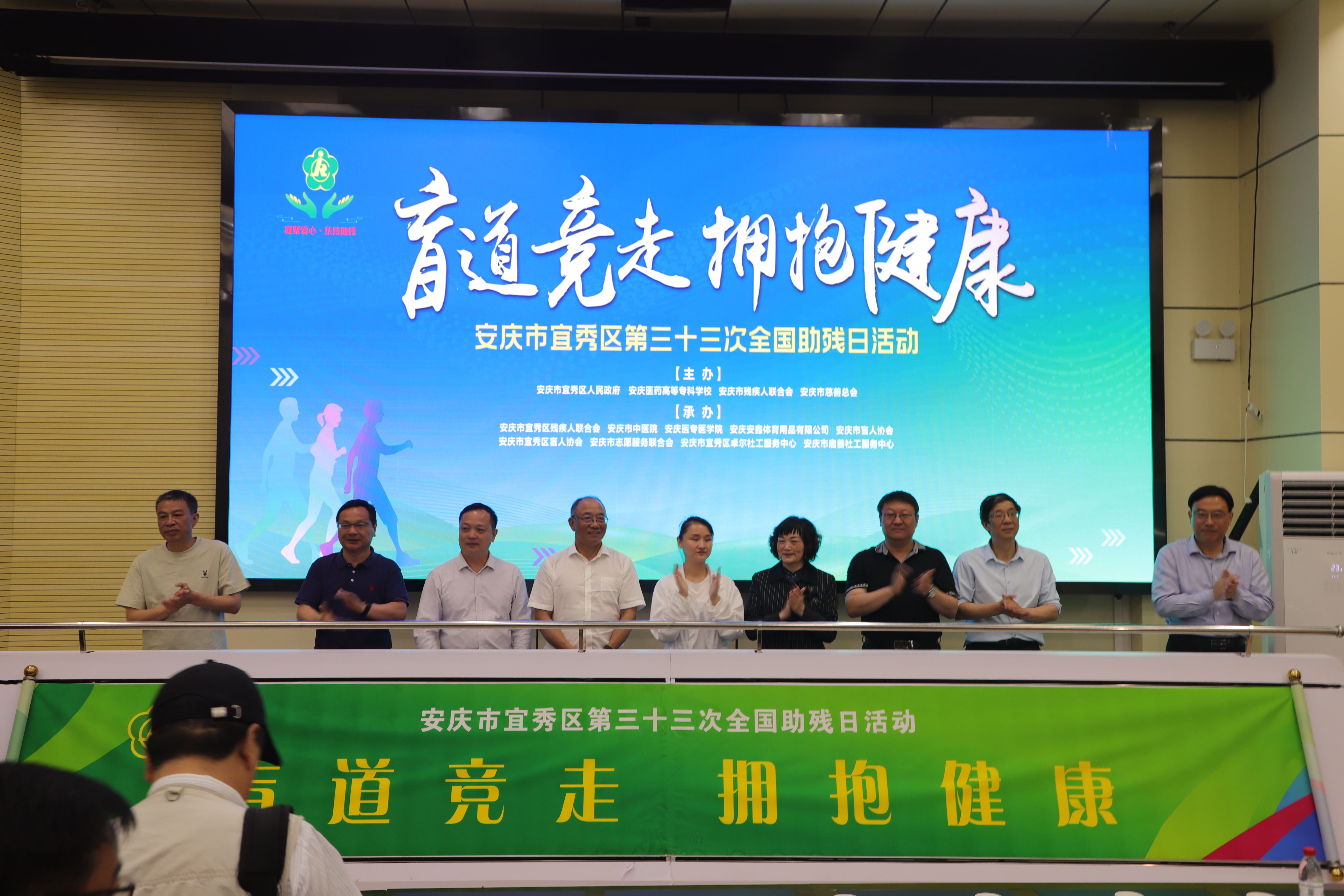 為進一步引導全社會理解、關心、幫助殘疾人,在第三十三次全國助殘日來臨之際,5月17日上午,安慶高等醫(yī)藥專科學校聯(lián)合宜秀區(qū)殘聯(lián)舉辦以“盲道競走,擁抱健康”為主題的助殘日系列活動,用行動呼吁全社會關心關愛殘疾人,營造和諧社會環(huán)境。安慶市慈善總會會長鄭家齊,市殘聯(lián)黨組書記、理事長張弛,宜秀區(qū)委副書記張吉全,宜秀區(qū)殘宜秀區(qū)常委、副區(qū)長王春等領導出席啟動儀式。我校校黨委書記葉林霞、校黨委副書記張仕慶,黨委委員、副校長朱慶豐,黨委委員朱三九、朱雯、陳琪、劉毅等領導受邀參加本次活動。