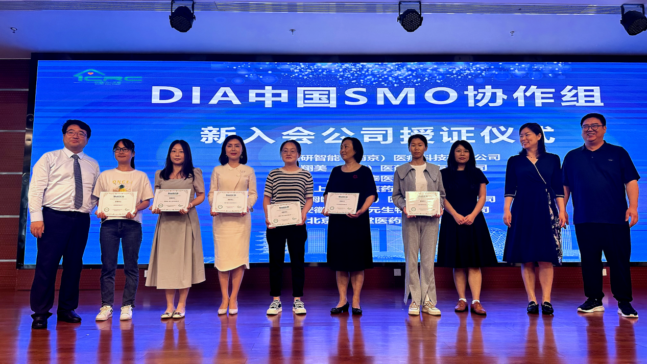 活動現場舉行了SMO協作組主任委員換屆儀式。CRC之家第四任主任委員王月與第五任主任委員王哲淵進行換屆交接,王月被授予監事長證書。SMO協作組為曜研智能(南京)醫療科技有限公司、翔美(南京)醫療科技有限公司、上海萌泰醫藥有限公司、上海尚合醫藥科技有限公司、塞姆歐(安徽)醫藥科技有限公司、安徽中微微元生物科技有限公司和北京濟美堂醫藥研究有限公司等新入會SMO公司頒發證書。