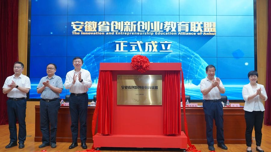 成立大會上,舒歌群、儲常連、江永泓、陳宏、周叢照共同為聯盟揭牌,標志著安徽省創新創業教育聯盟正式成立,聯盟的成立對于加快全省創新創業教育生態系統的構建與發展具有重大意義。