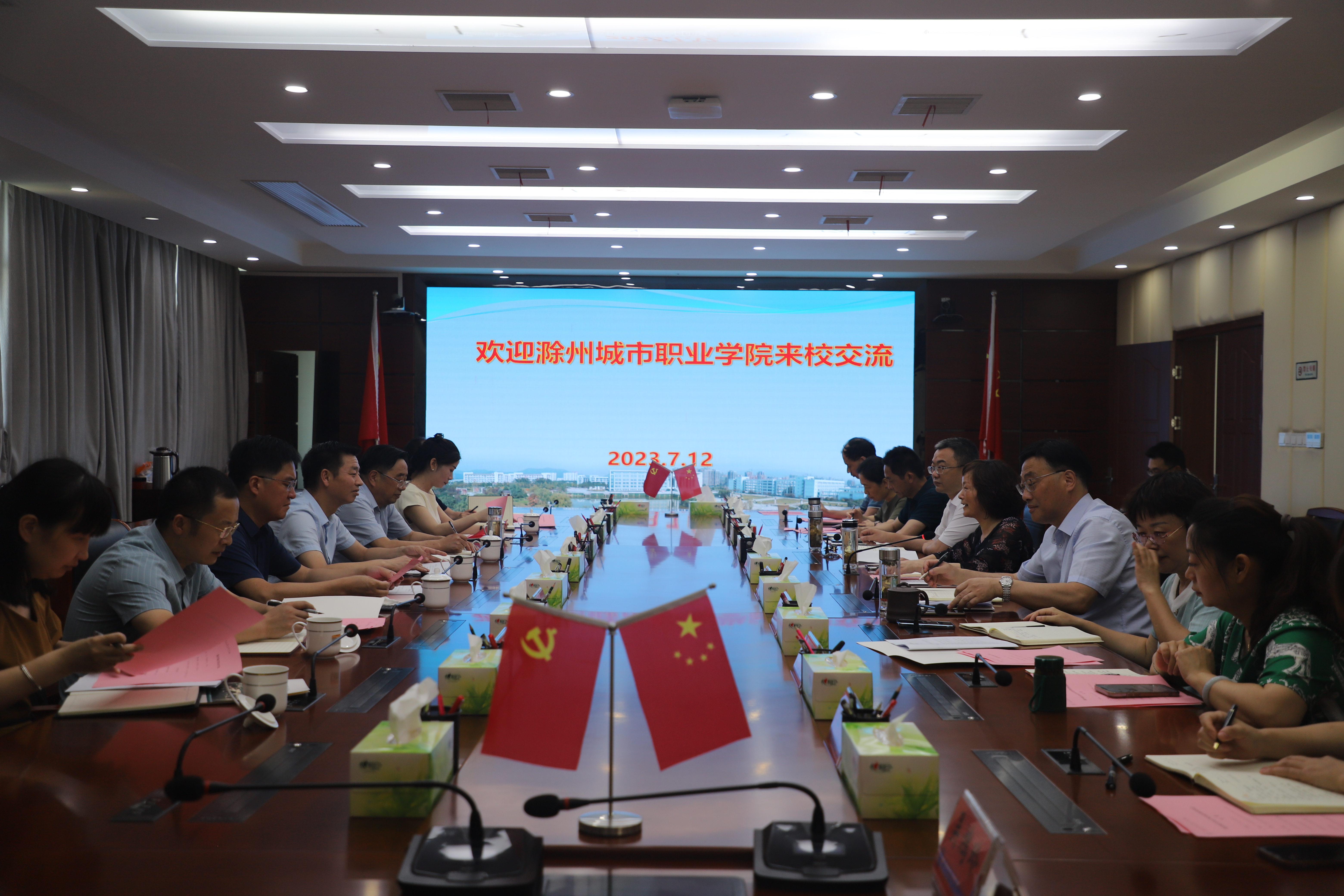7月12日,滁州城市職業學院院長汪上一行9人來我校考察交流。校黨委書記葉林霞,黨委委員、副校長朱慶豐,黨委委員朱三九、朱雯、劉毅,相關部門負責等參加考察交流活動。
