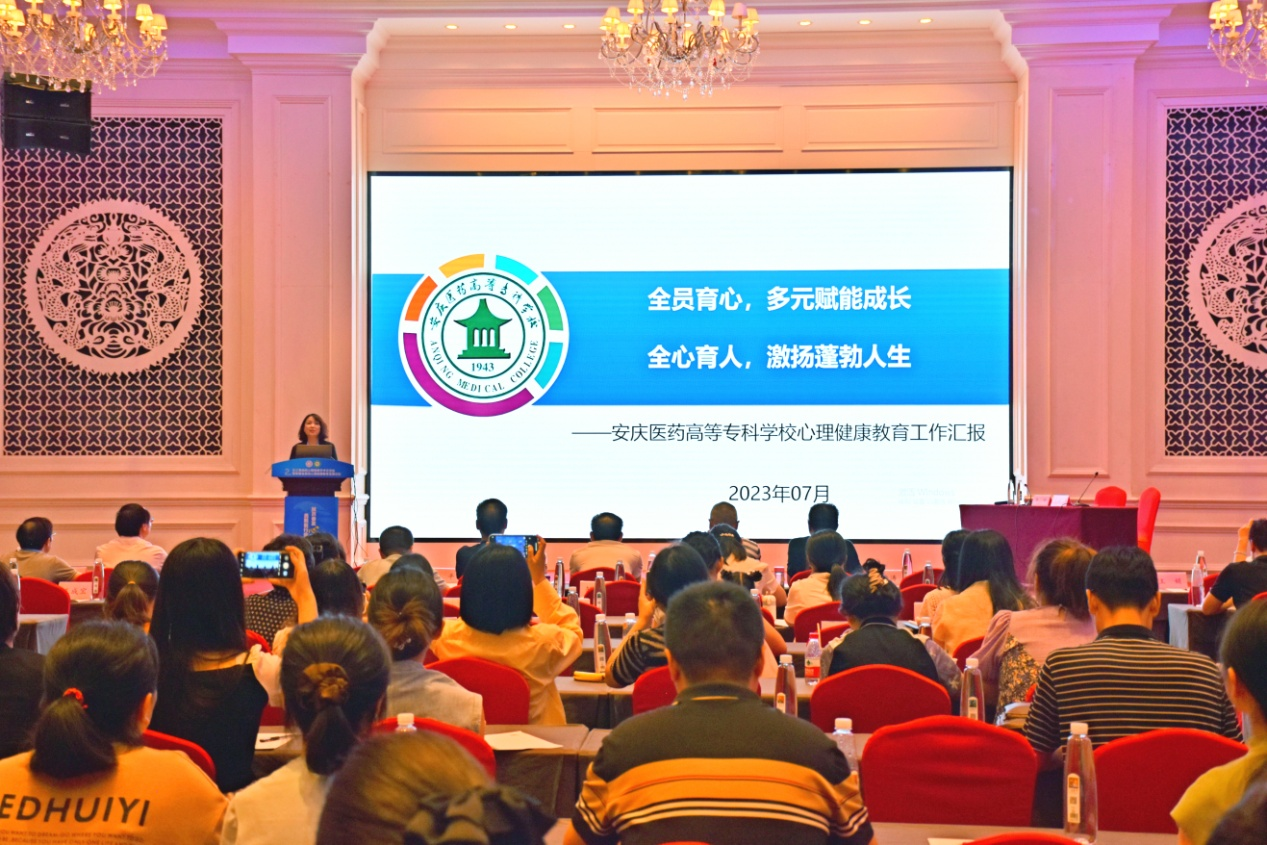 會上,中國科學(xué)技術(shù)大學(xué)、安徽建筑大學(xué)、合肥幼兒師范高等專科學(xué)校、安慶醫(yī)藥高等專科學(xué)校等四所高校就心理健康教育與管理工作作經(jīng)驗交流。我校黨委委員陳琪代表學(xué)校以“全員育心、多元賦能成長 全心育人,激揚(yáng)蓬勃人生”為題進(jìn)行現(xiàn)場交流匯報,目前我校的心理健康工作形成了以心理健康課程為中心,心理提升計劃為主線,心理咨詢工作為重點,醫(yī)校聯(lián)合服務(wù)為平臺,班級心理委員為紐帶,心理拓展活動為特色的工作新格局,進(jìn)一步守護(hù)學(xué)生心理健康。