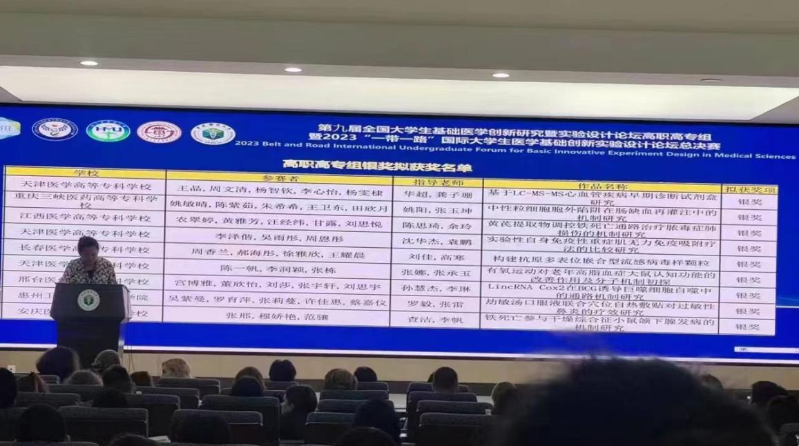 2023年8月20日,第九屆全國大學生基礎醫學創新研究暨實驗設計大賽高職高專組總決賽落下帷幕,本次比賽由高等學校國家級實驗教學示范中心聯席會主辦,哈爾濱醫科大學、上海交通大學醫學院、重慶醫科大學承辦,經過全國預選賽的篩選,高職高專賽道有60支代表隊進入國賽總決賽。