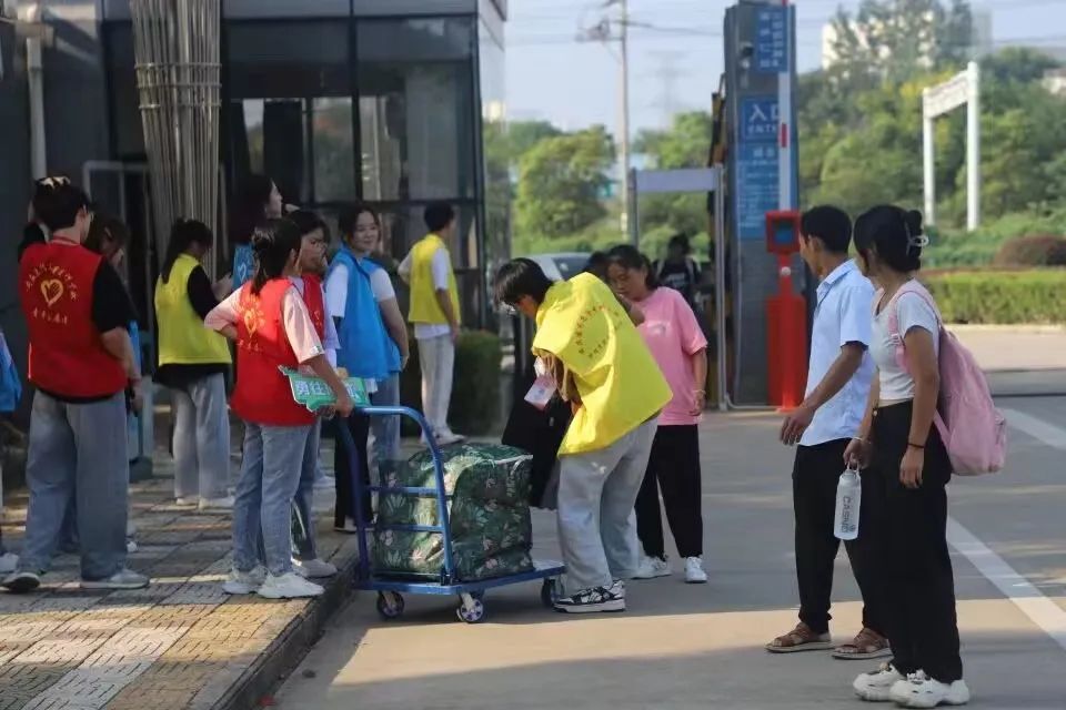 在學校大門口及校內環路上,隨處可見志愿服務的黨員老師們,他們引導新生家長們行駛到正確路線,并按照規范停車,同時解答新生遇到的各類困難。讓到來的新生們感受到如沐春風的溫暖,體會到了學校黨員老師們對新生的關心關懷。