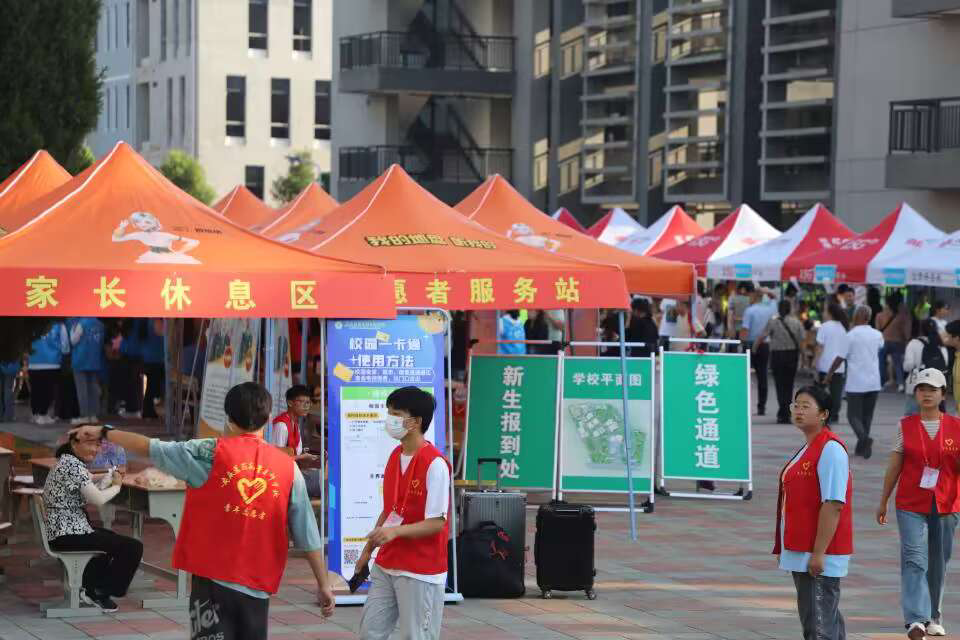 校園內,迎新工作如火如荼。佩戴志愿者工作牌的學生志愿者們活躍在校內各主次干道、報到點、食堂等處,為新生提領行李,引導新生家長規范停車,指引新生報到流程,幫助新生熟悉環境,悉心為新生們服務。學長學姐們細心周到的服務,很快消除了新生們初來乍到的惶恐和陌生。