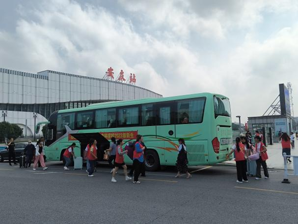 同時為減少新生和家長奔波的辛勞,自6日上午開始,學校安排了迎新大巴在安慶火車站采取循環班次接送新生及家長,并安排老師及學生志愿者接站,做好新生到達安慶第一站的服務工作。