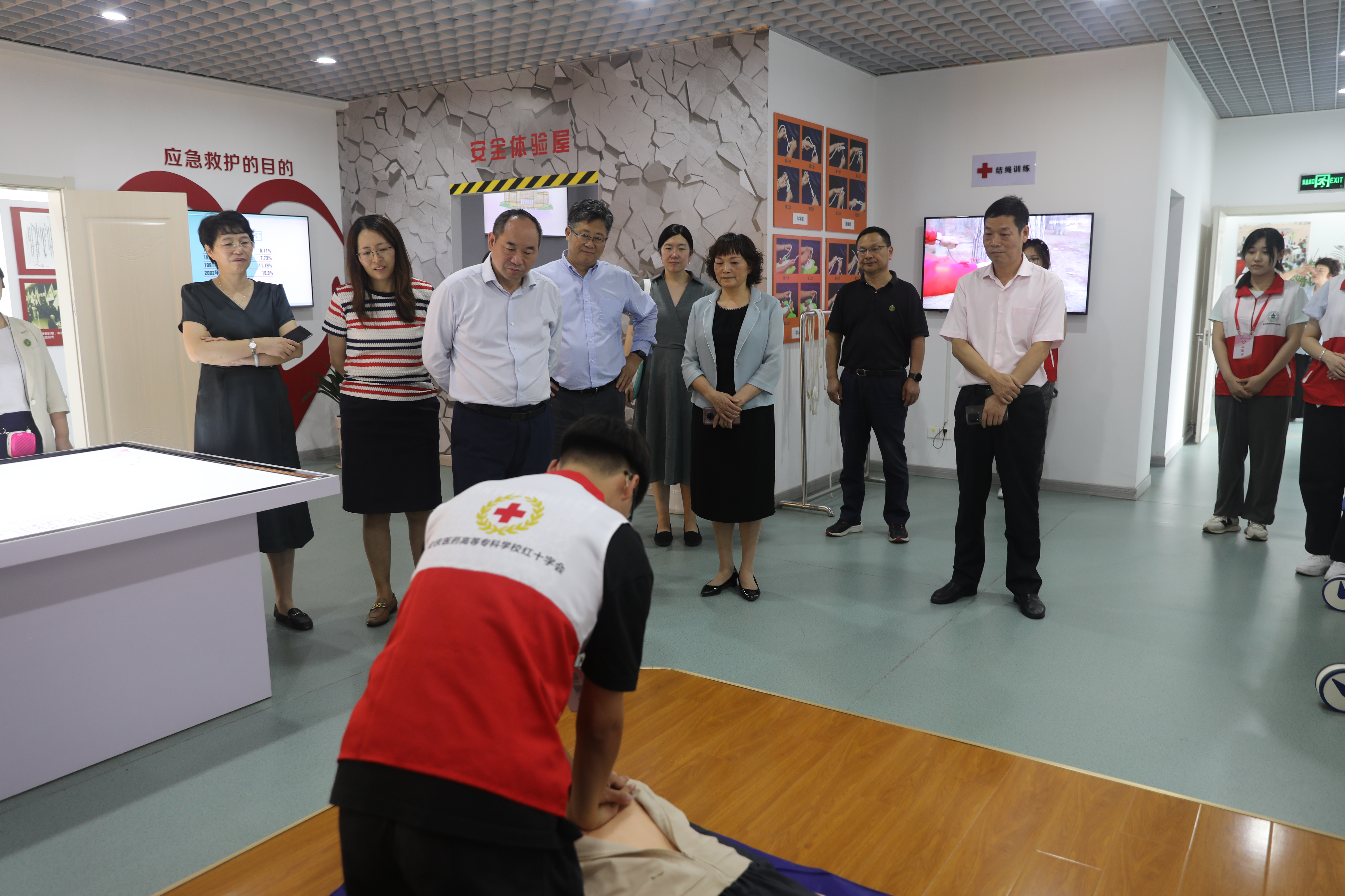 鄧傳淮一行先后在至善廣場、紅十字應急救護培訓基地、實驗實訓中心和校融媒體中心進行了實地調研,聽取了校領導關于學校“十四五”發展規劃的落實情況以及遠期發展規劃的匯報,重點了解了學校省級高水平職業院校和專業群建設以及重大工程項目的推進情況。鄧傳淮充分肯定了學校領導班子的創業熱情和團結一心,對學校的工作氛圍以及同學們的精神風貌給予了贊揚。在護理實訓中心,鄧傳淮與護理學院師生進行了親切交流,對學校全面落實黨的教育方針,重視實踐教學和技能培養的辦學特色給予了高度評價。在校融媒體中心,鄧傳淮對學校高度重視思想政治工作,主動適應新媒體環境,以網絡育人、實踐育人為路徑落實“三全育人”的相關工作給予了肯定。他希望學校以習近平總書記關于教育的重要論述為指引,落實立德樹人根本任務,進一步提升人才培養質量、提升社會服務水平,為建設教育強國,辦好人民滿意的教育作出新的更大貢獻。